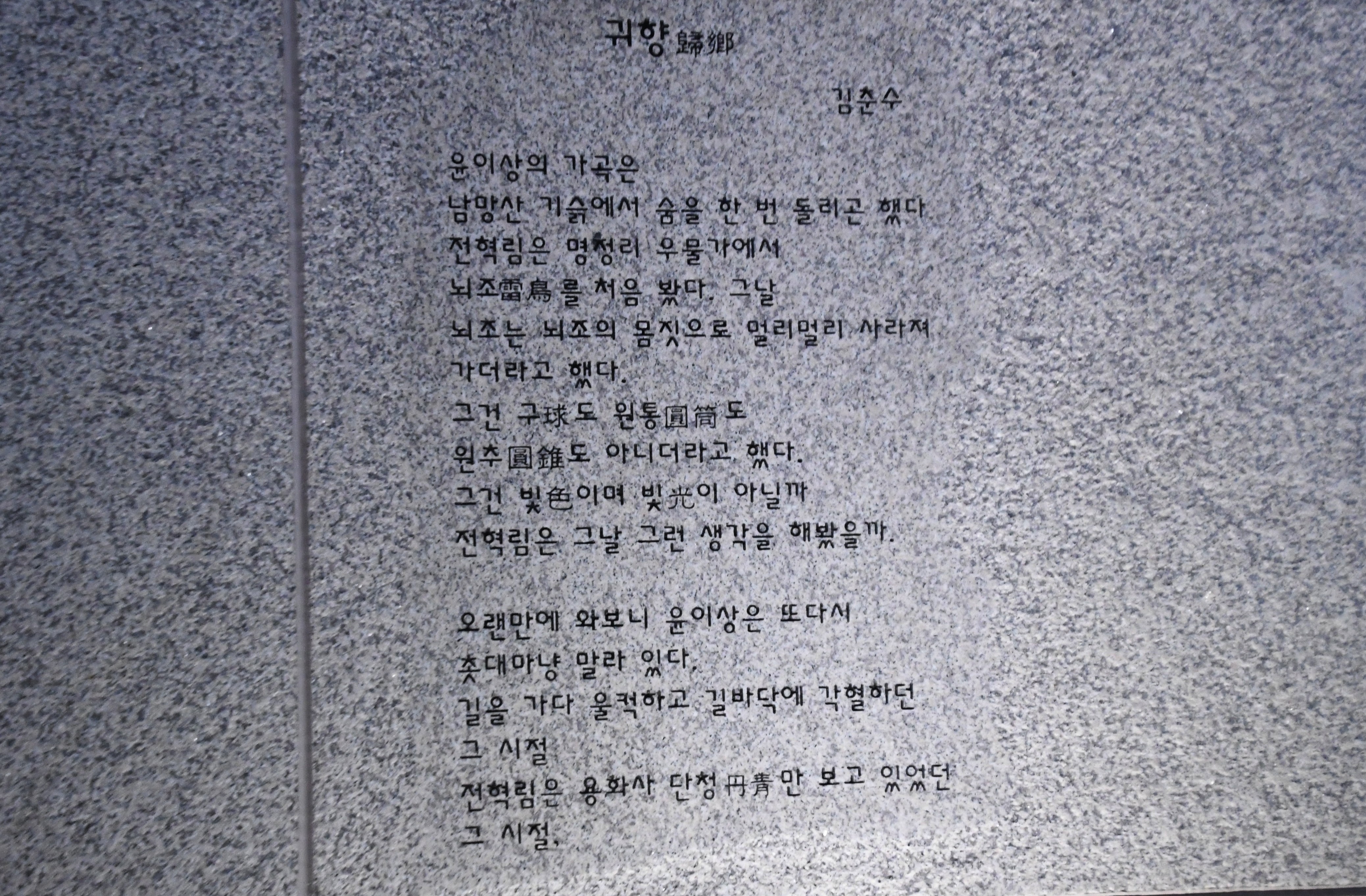 통영의 대표문인 박경리와 유치환 김춘수의 시가 차례로 새겨져 있다