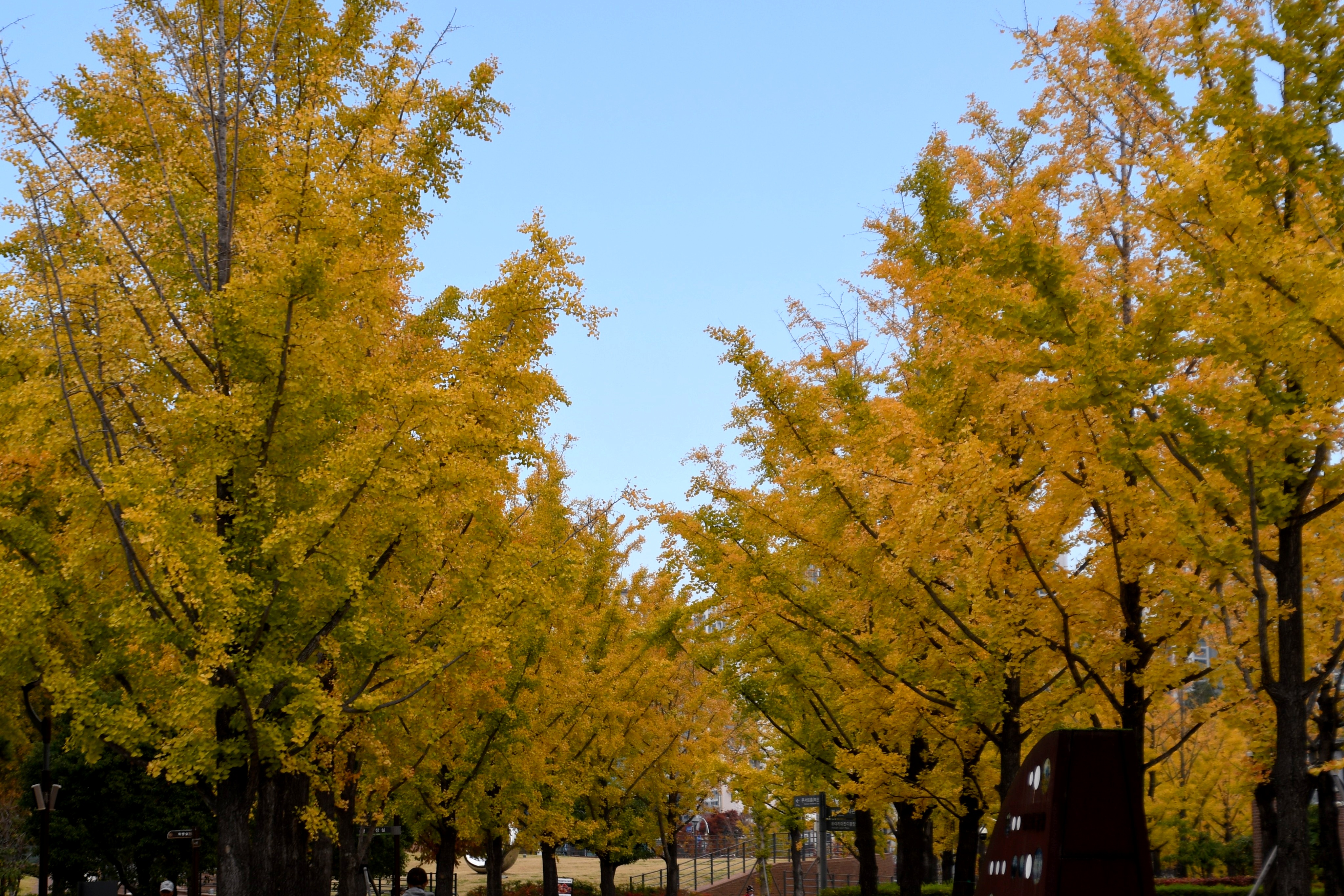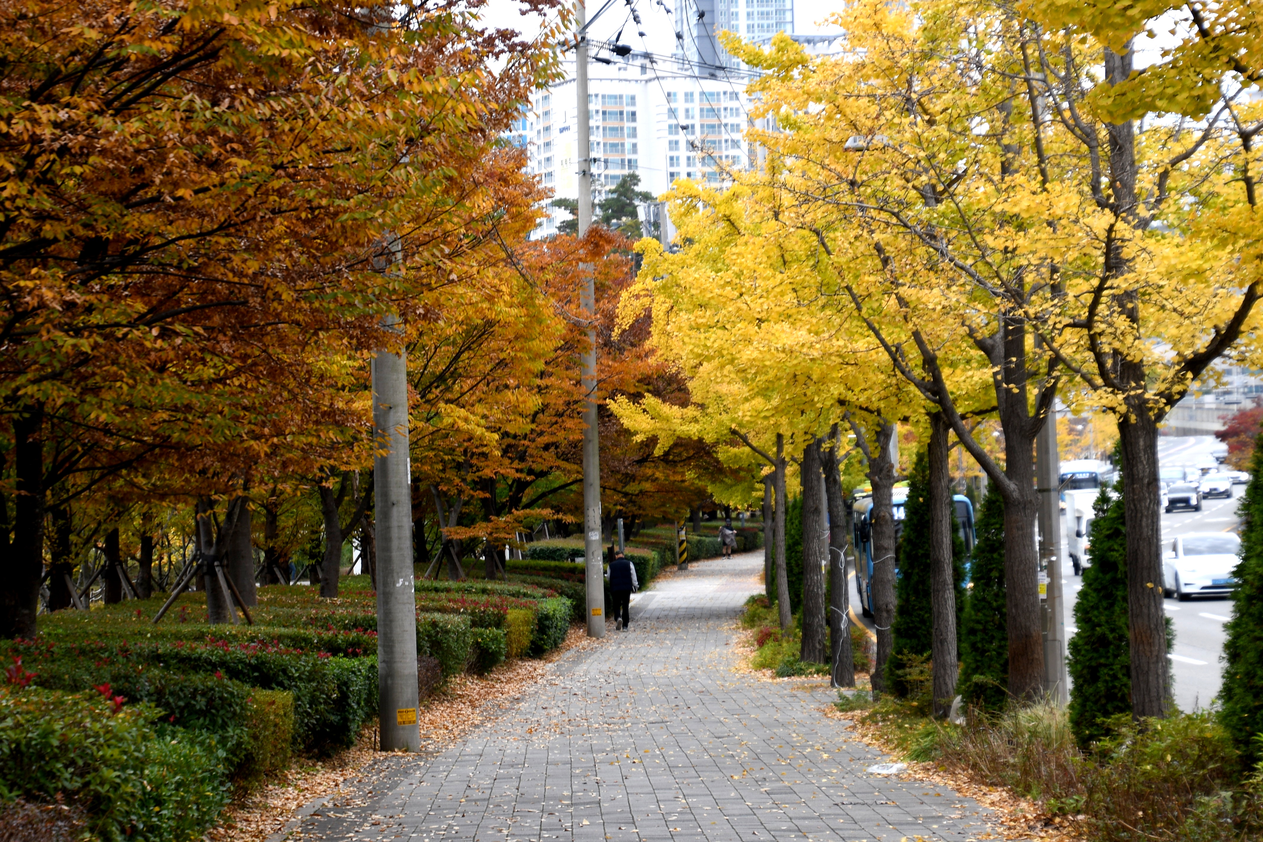 시민공원 인도에는 느티나무와 은행나무를 가로수로 심었다