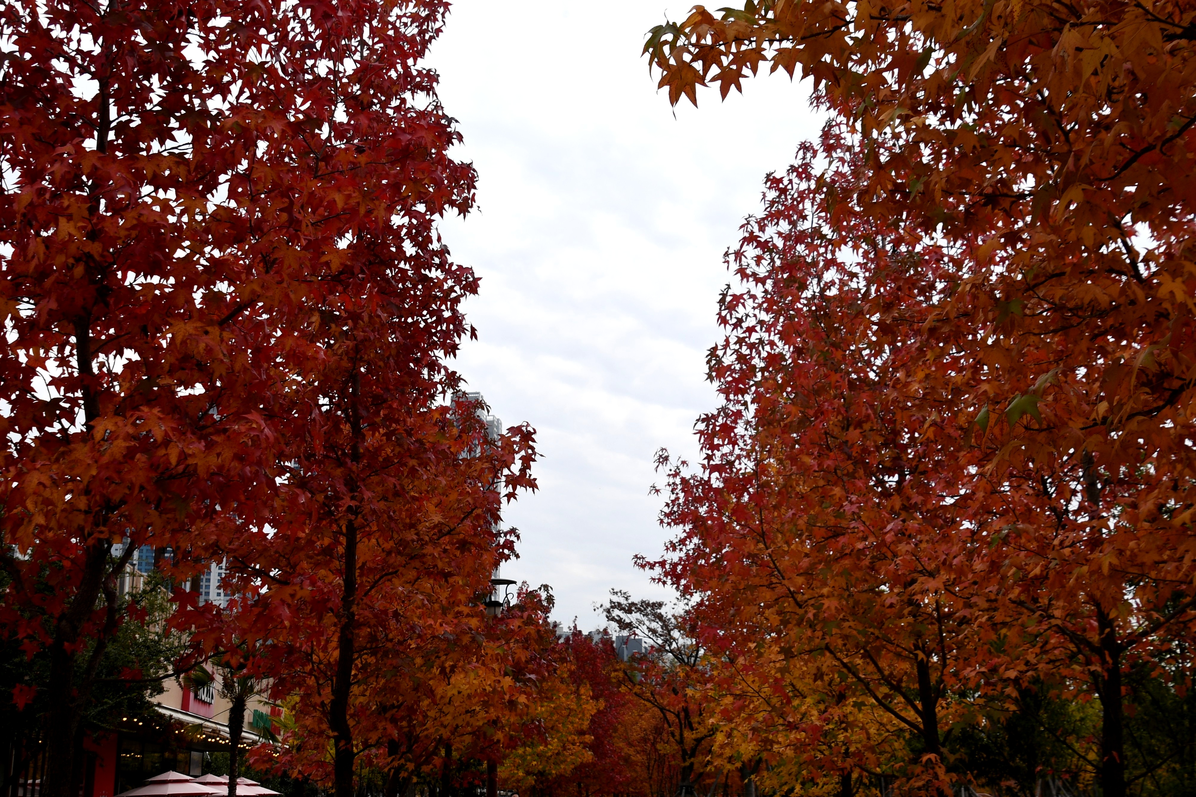 아침운동하고 오면서 시민공원을 바라보면 단풍이 제법 붉게 물들고 있는 모습이 보여