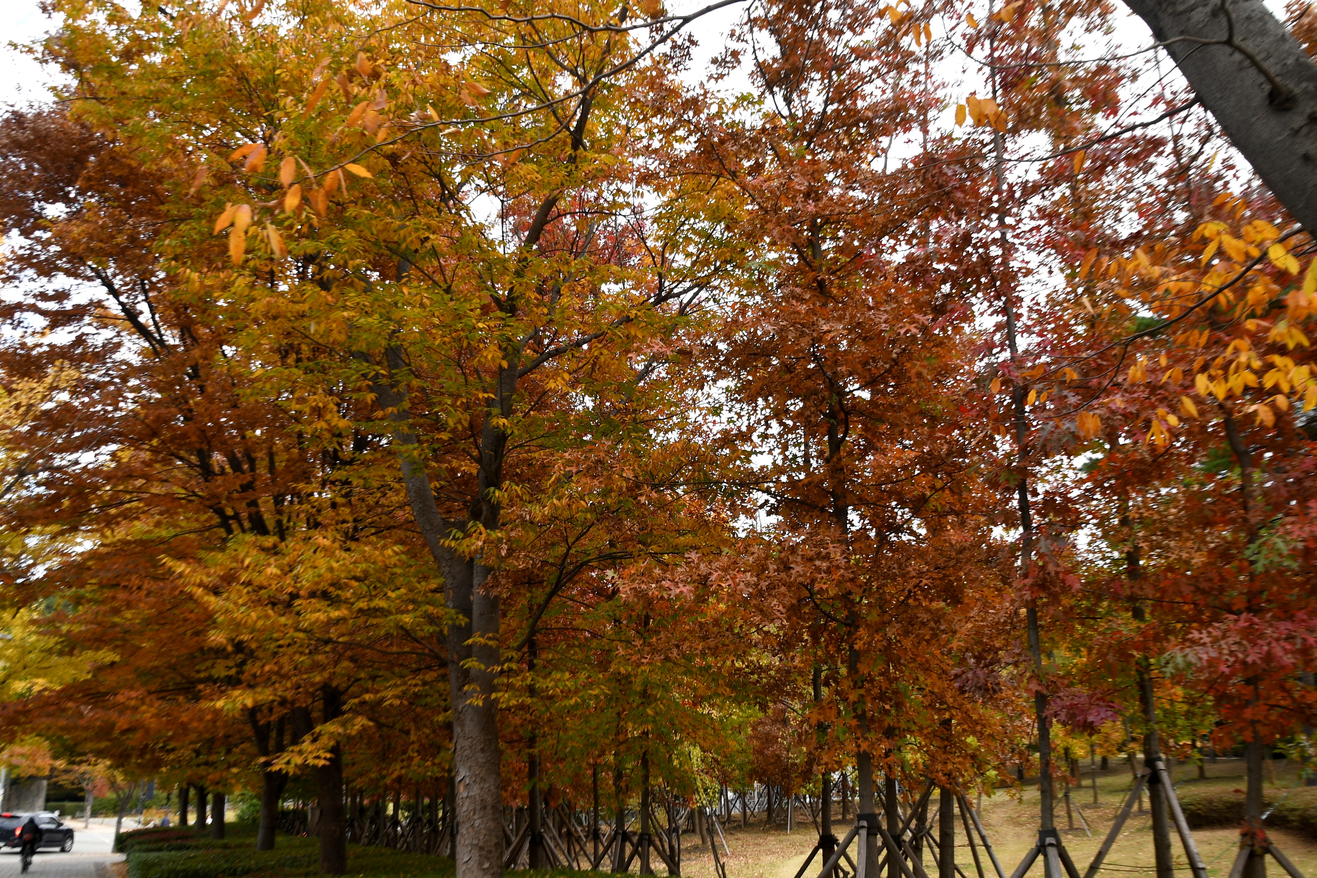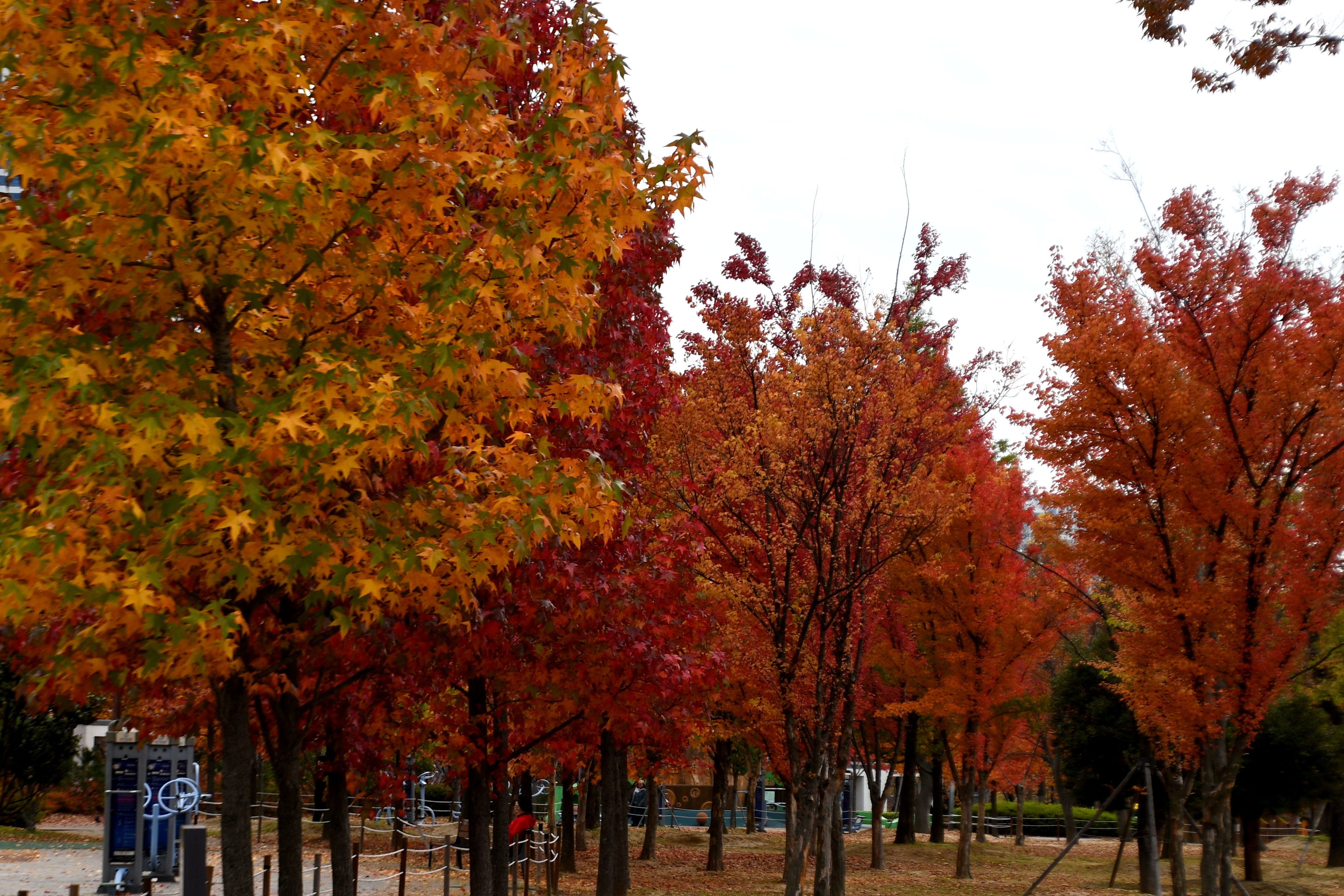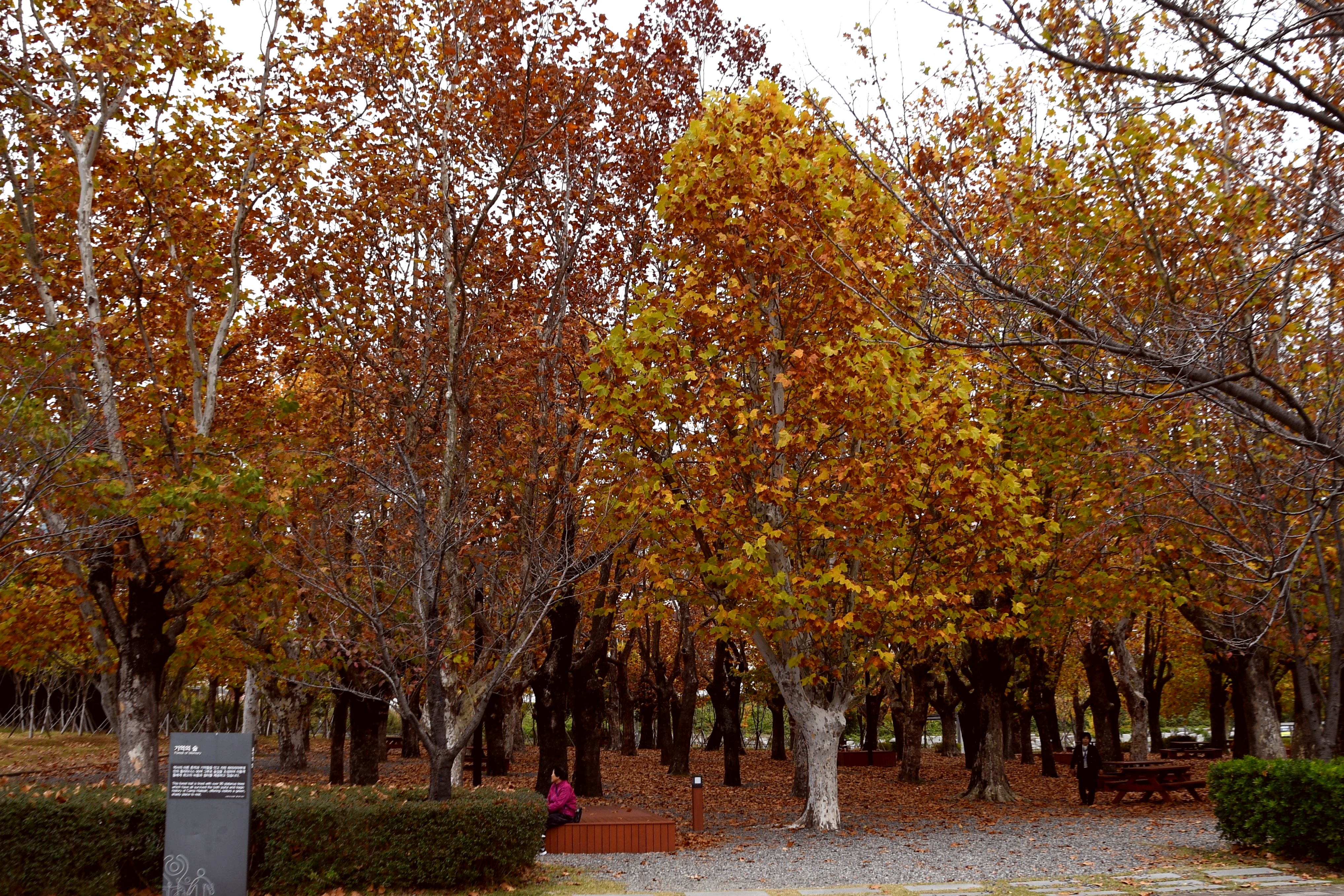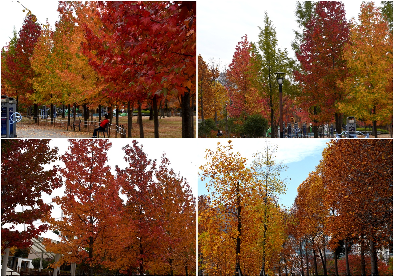 시민공원에 곱게물들은 나무들은 느티나무 양버즘나무 은행나무와 튤립나무 대왕참나무 칠엽수 등이 많이 보인다