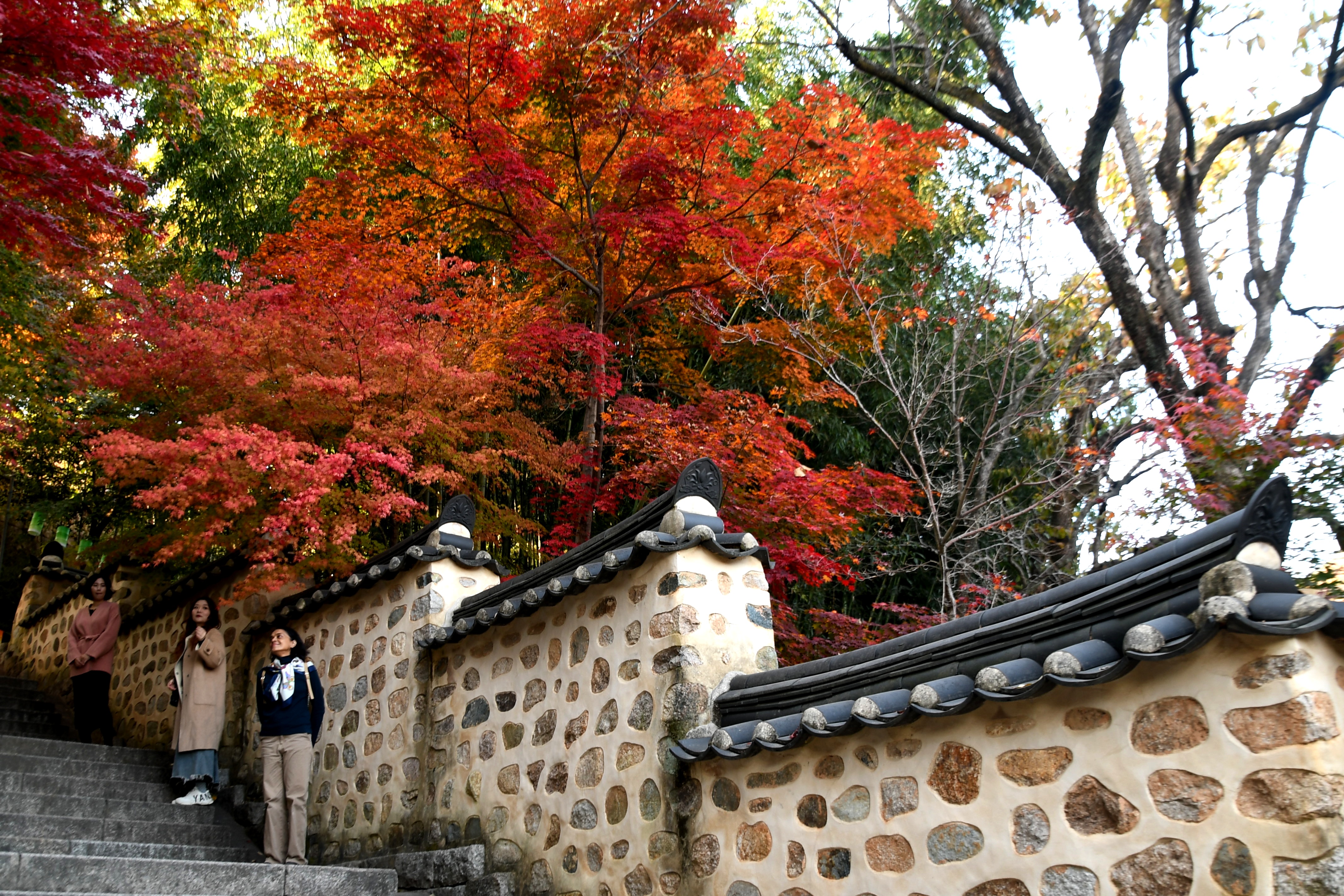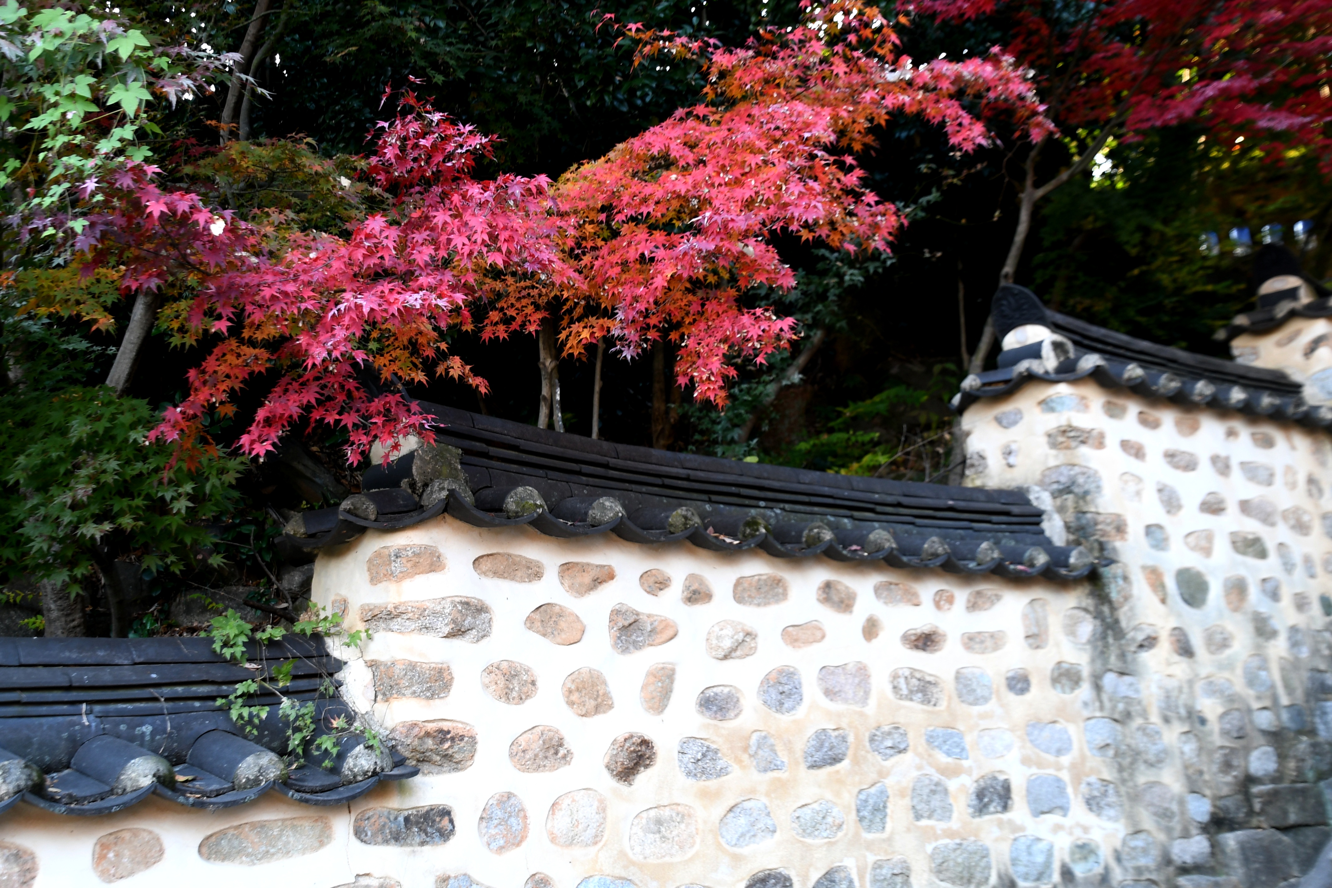 담장이 아름다운 그곳에 붉게물들은 단풍나무가 걸쳐있는 모습이 그림 같지 아니한가?