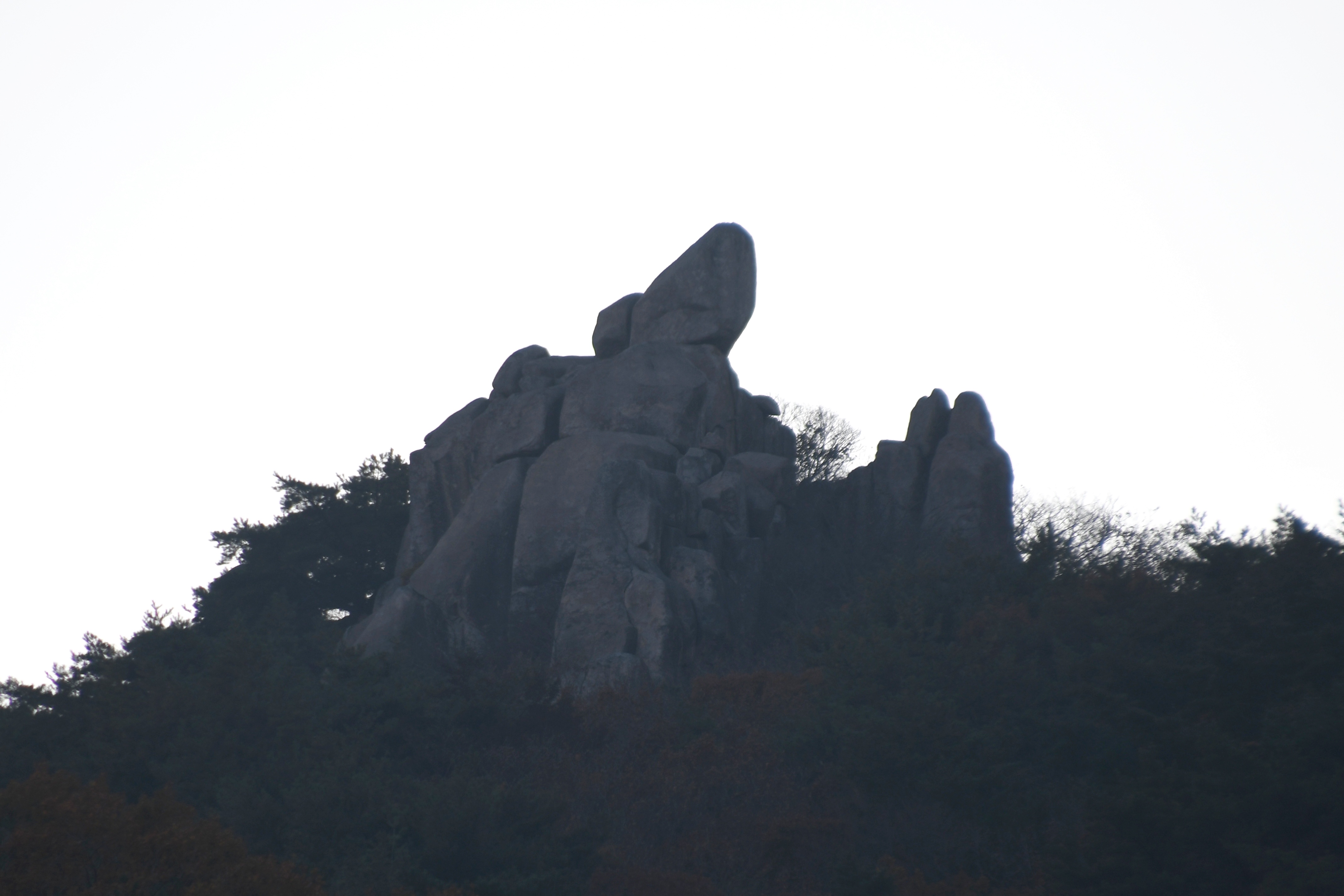 멀리 바라보이는 산에 멋진 바위가 있는데 최대의 줌으로 당겨보지만 역광으로 제모습을 담지 못했다