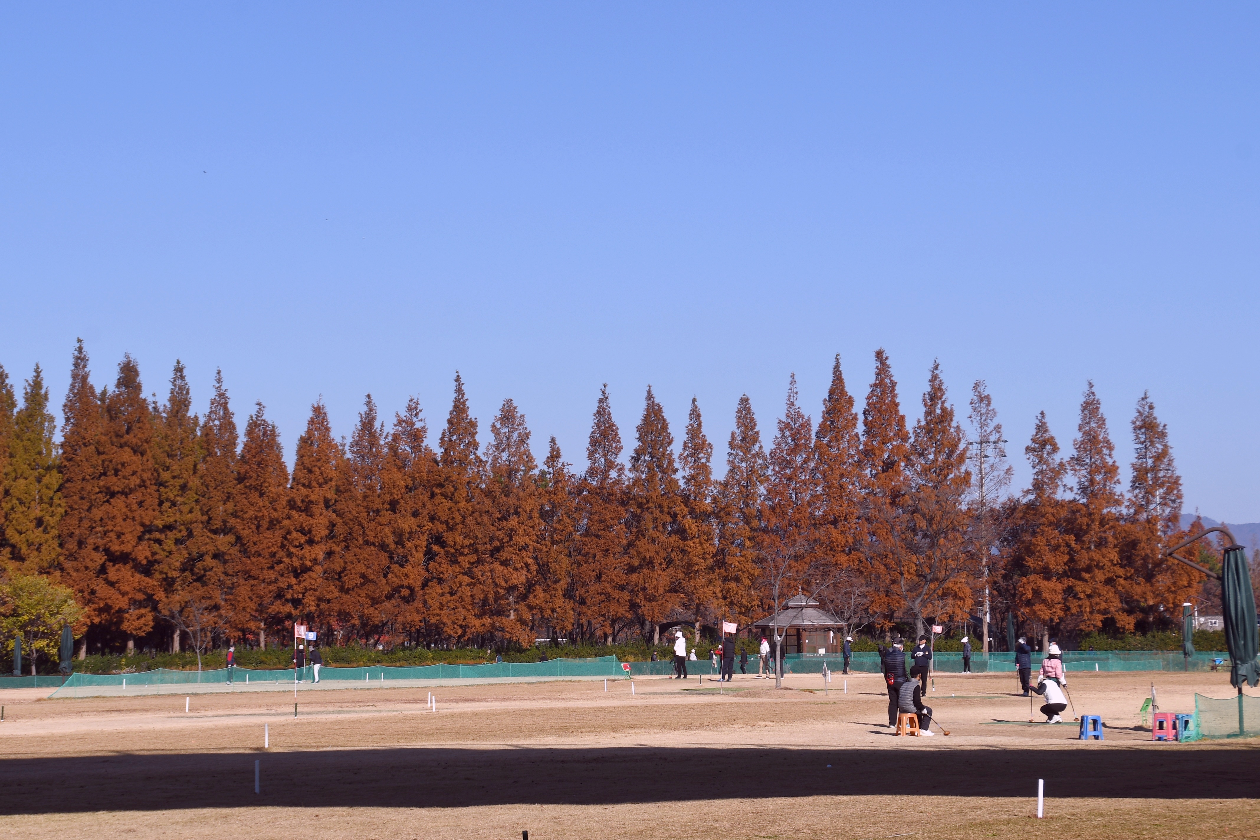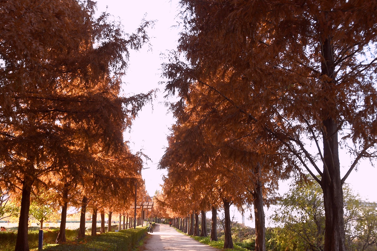 삼락생태공원 주위에 메타스퀘이아가 곱게 물들어 가고 있어 아침에 파크골프 치고 옆지기 출근시키고