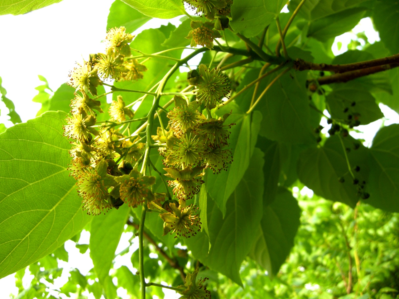 꽃: 4월경에 가지 끝이나 잎겨드랑이에서 원추꽃차례로 모여 피며, 꽃잎은 없습니다.