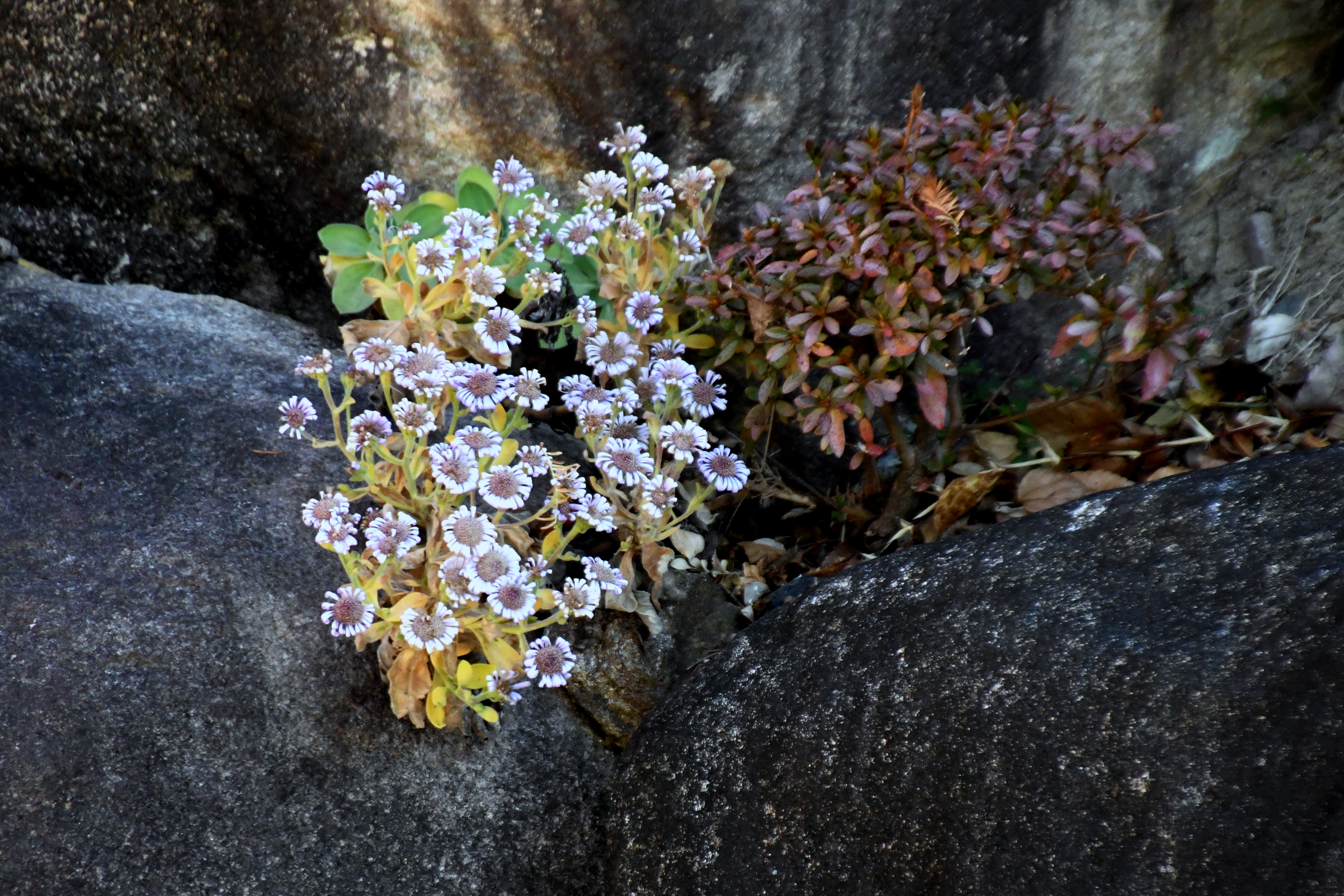 온실 입구에 바위 언덕에는 해국이 아직도 끝물이 남아 있었네