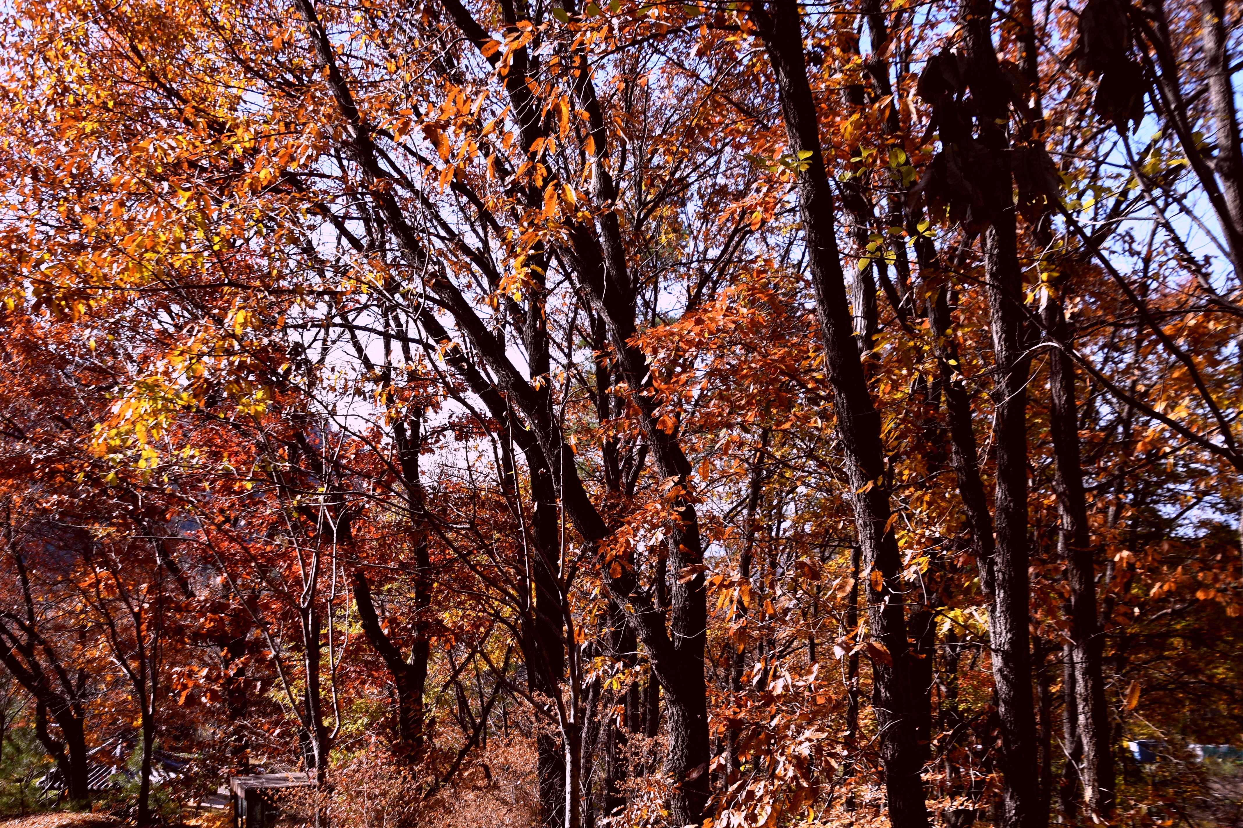 숲속나목들 사이로 아직 단풍의 모습도 보이고