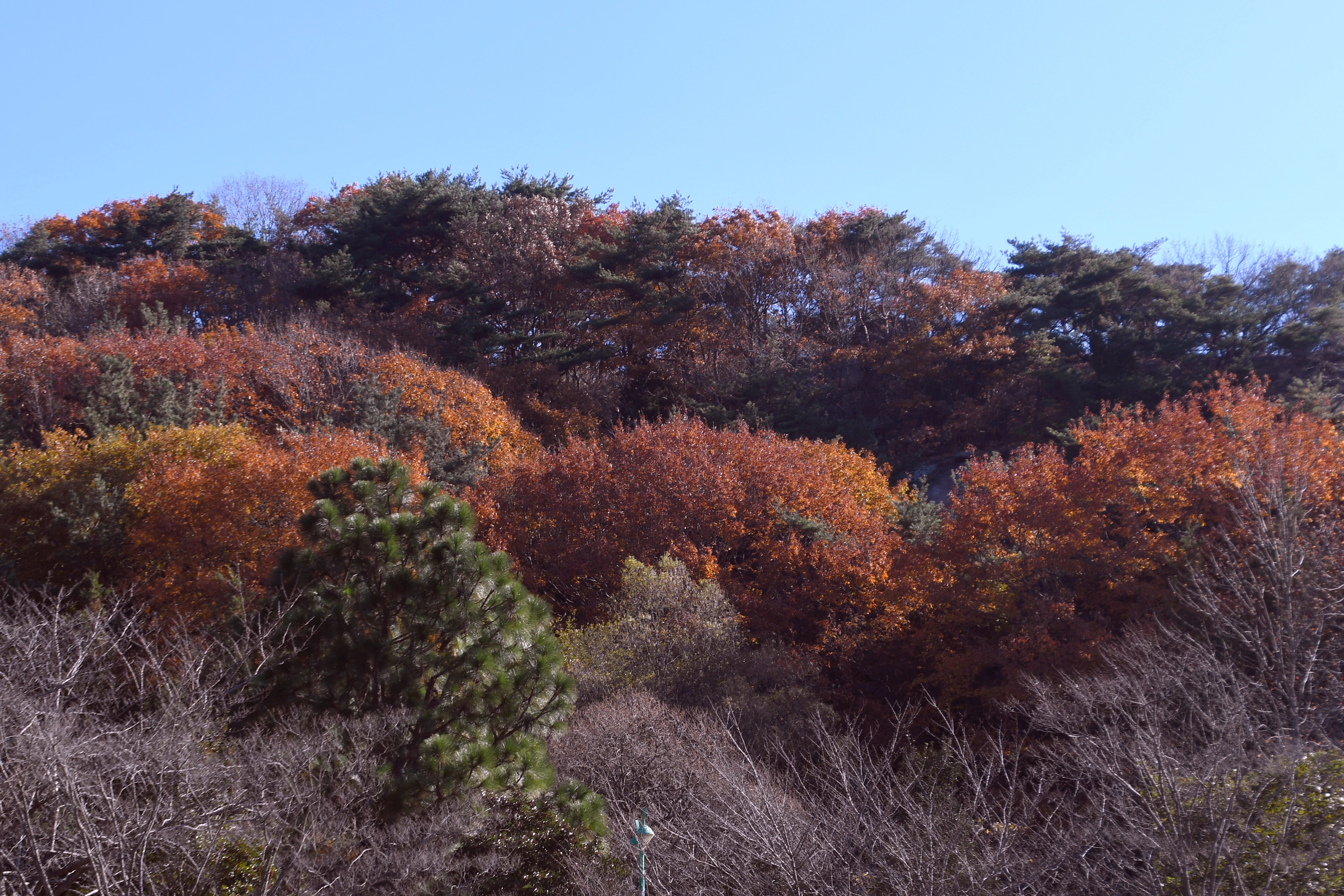 금정산에도 이제 푸르른 소나무만 남고 거의 나목으로 변했는데 곳곳에 참나무 종류의 단풍만 남아 있다