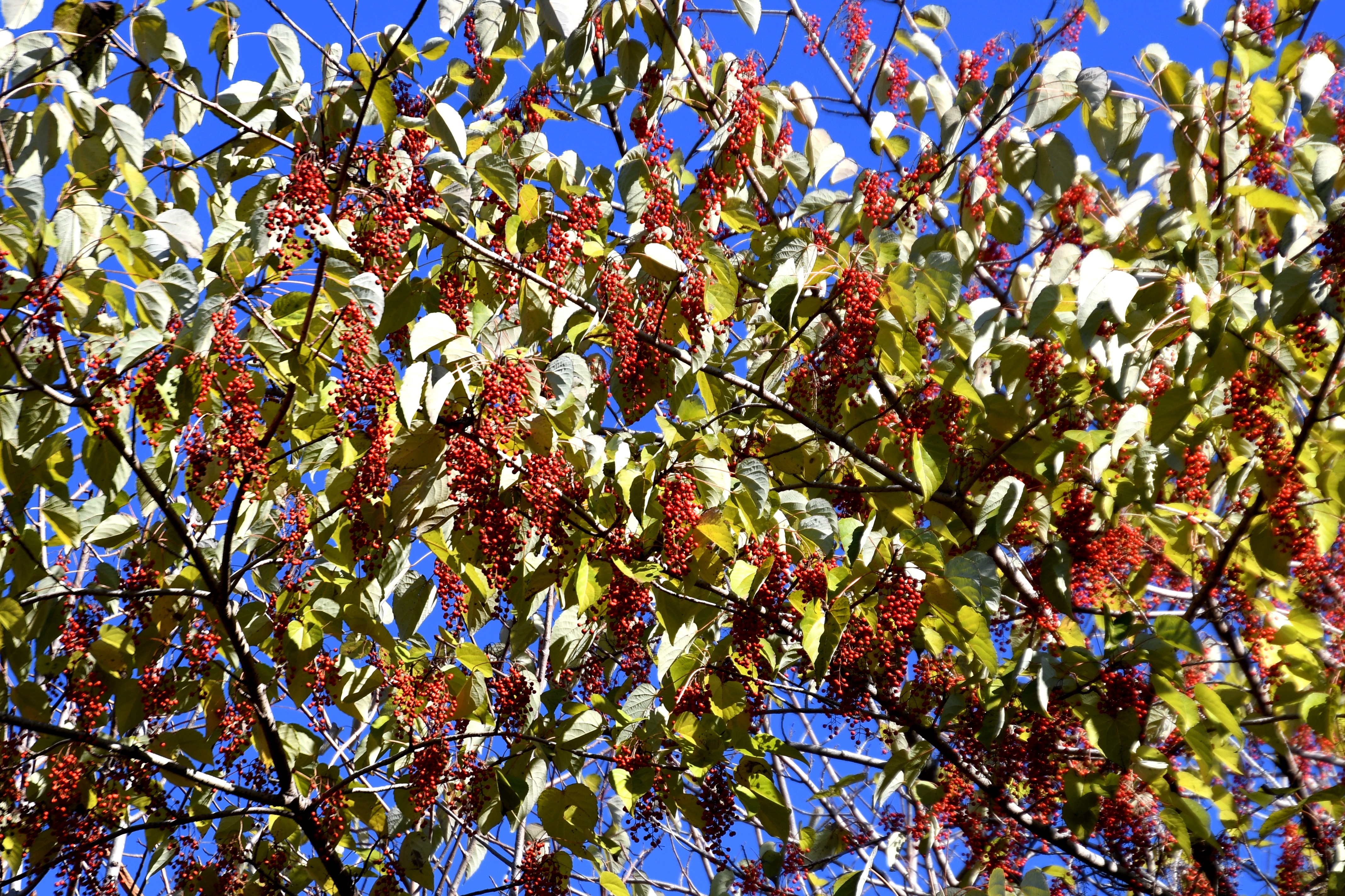 자주색이고 털이 있다. 열매는 지름 1cm 내외의 구형이며 10개 정도의 씨가 들어 있고 11월경에 빨갛게 익는다.