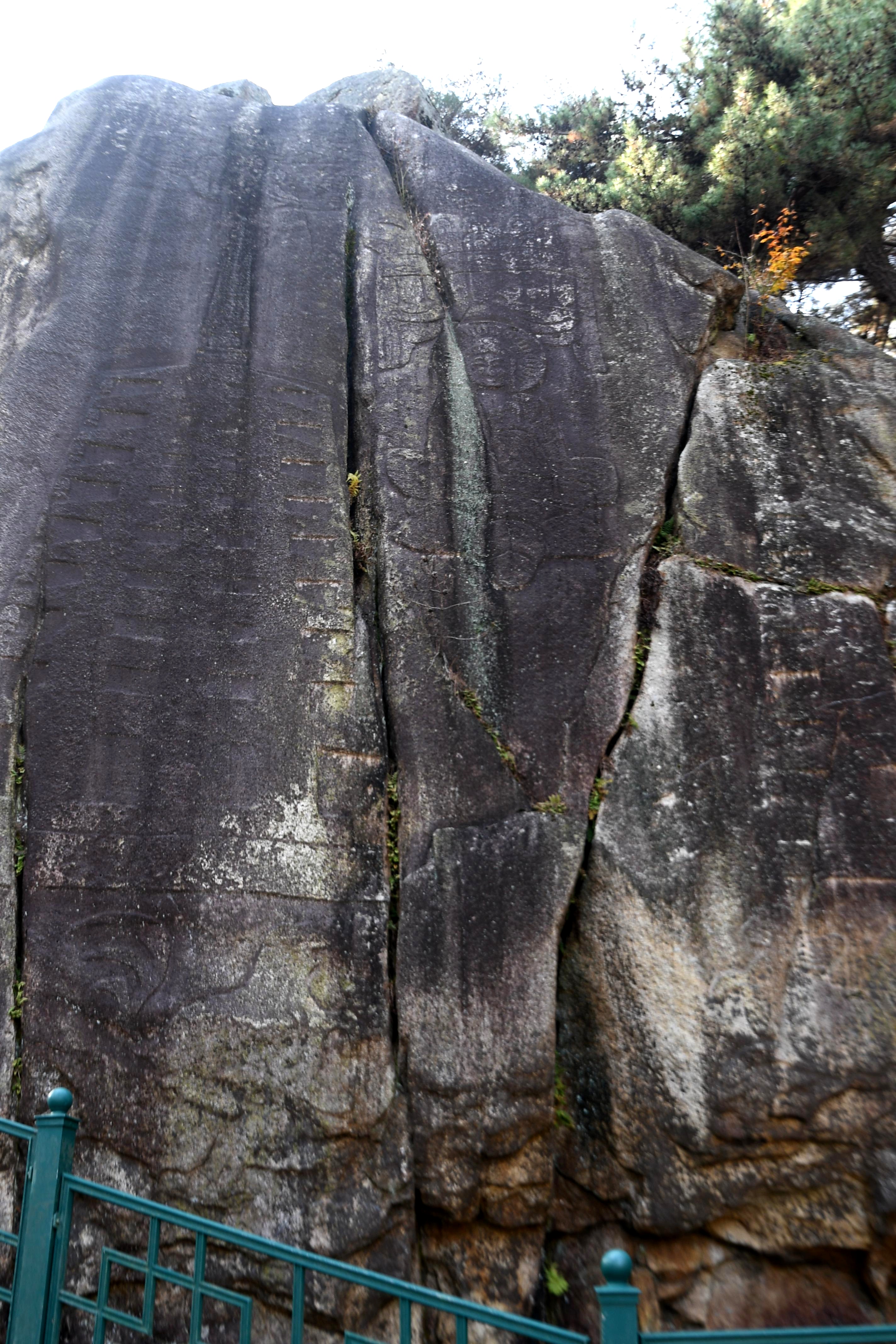 바위의 4면 가운데 가장 면적이 넓은 북면에는 목탑형식의 9층탑과 7층탑이 좌우에 새겨져 있고 그 밑에는