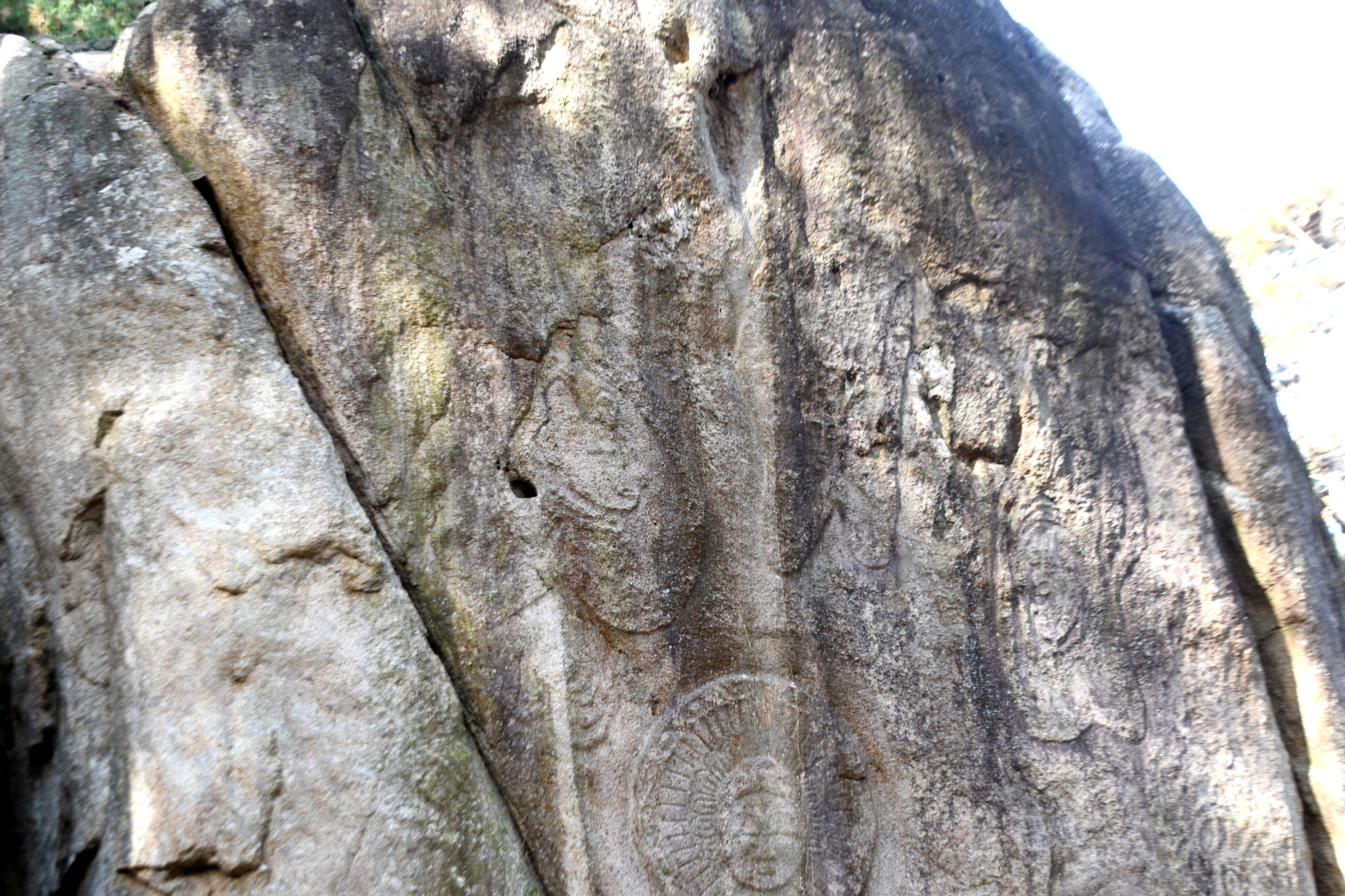 환조상의 옆 바위에 새겨진 나한상은 옆에서 바라본 모습인데, 길고 복스러운 얼굴, 위엄 있는 자세 등을 뛰어난