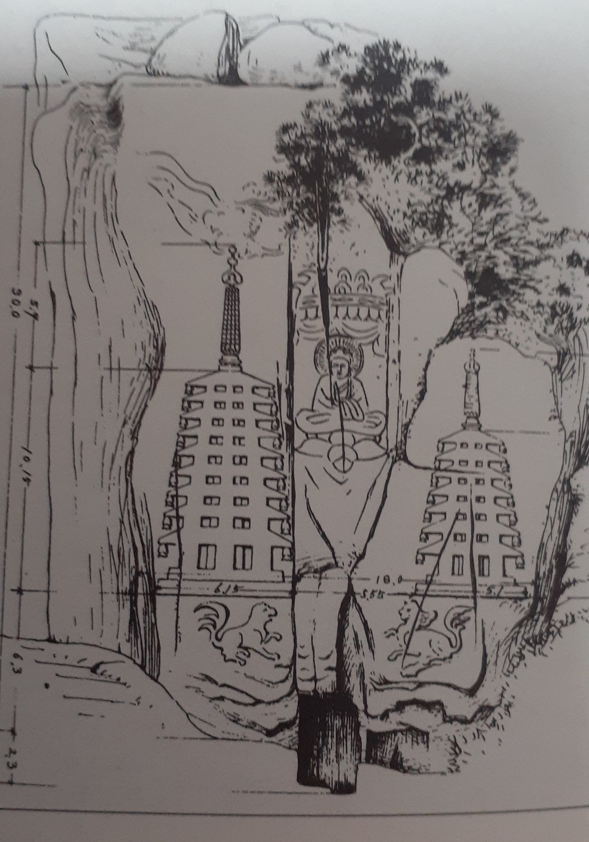 두 그루의 나무 밑에 앉아 있는 불상은 얼굴이나 체구는 거의 동면상과 흡사하다.