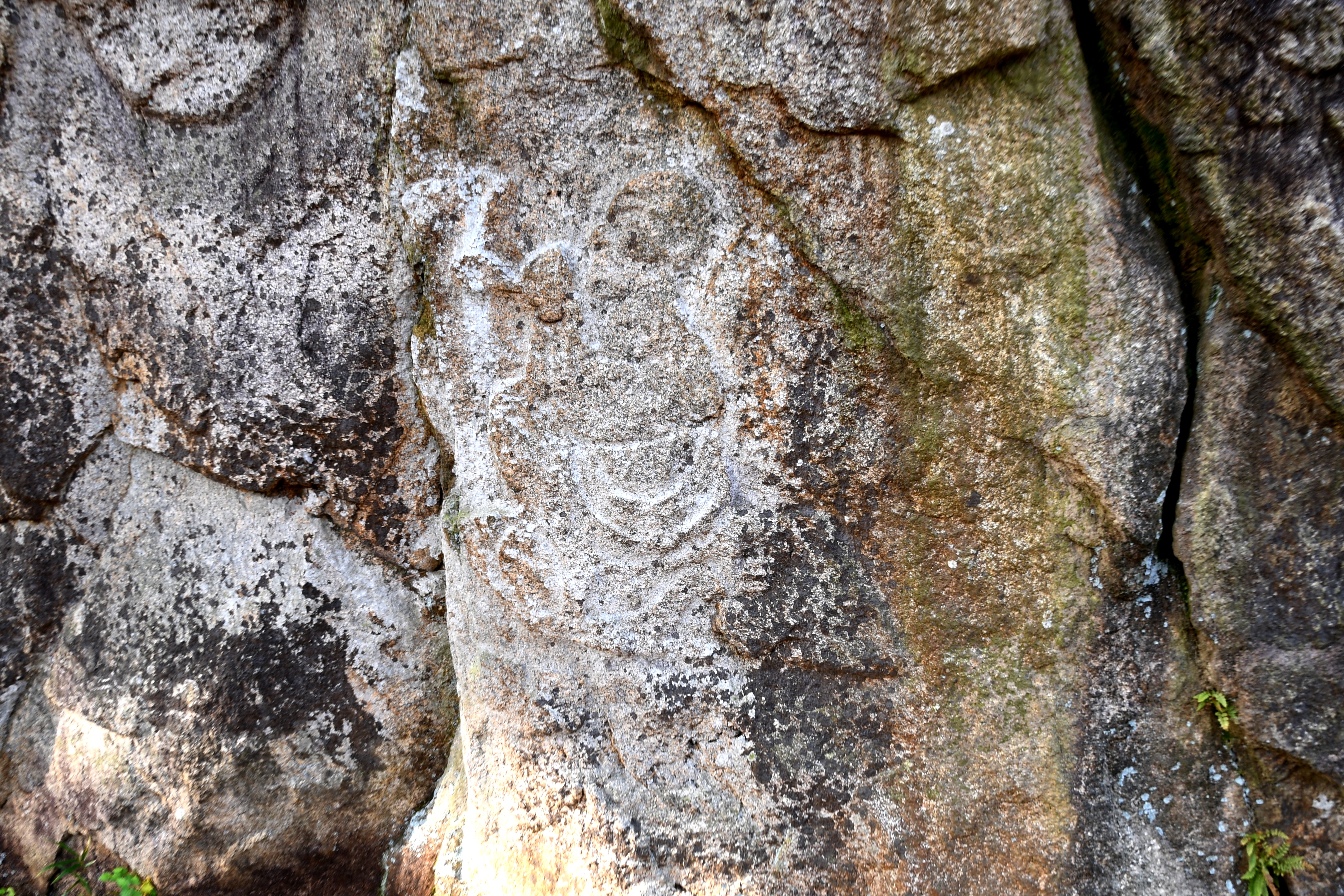 남면의 바위 면은 40㎝ 정도의 틈이 벌어져 두 면으로 구분되어 있는데, 오른쪽에 삼존불상이 새겨져 있고 왼쪽에