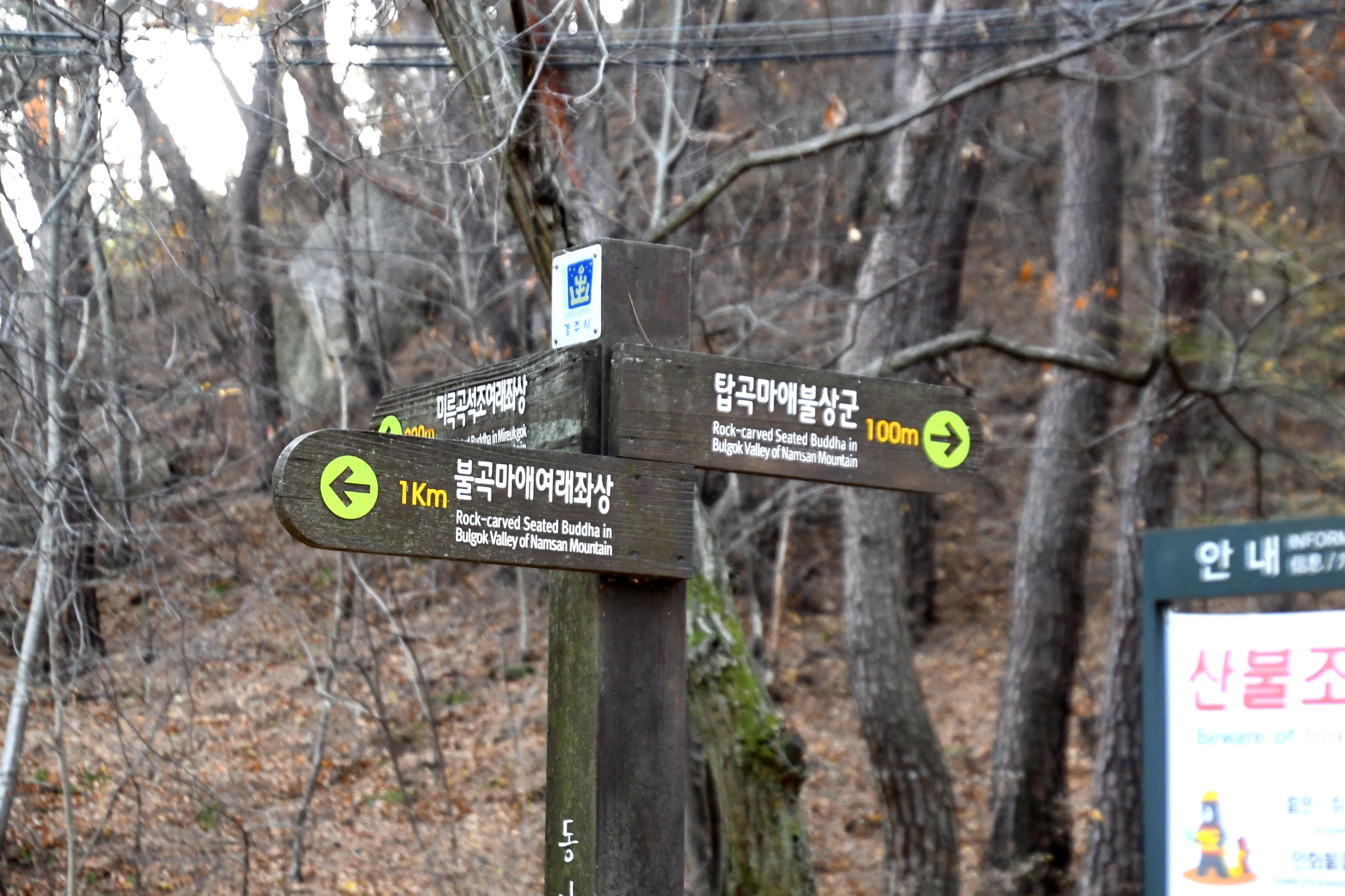 이정표에 보면 미륵곡석조여래좌상이라고 쓰여 있는데 이곳은 보리사가 있는 곳이다