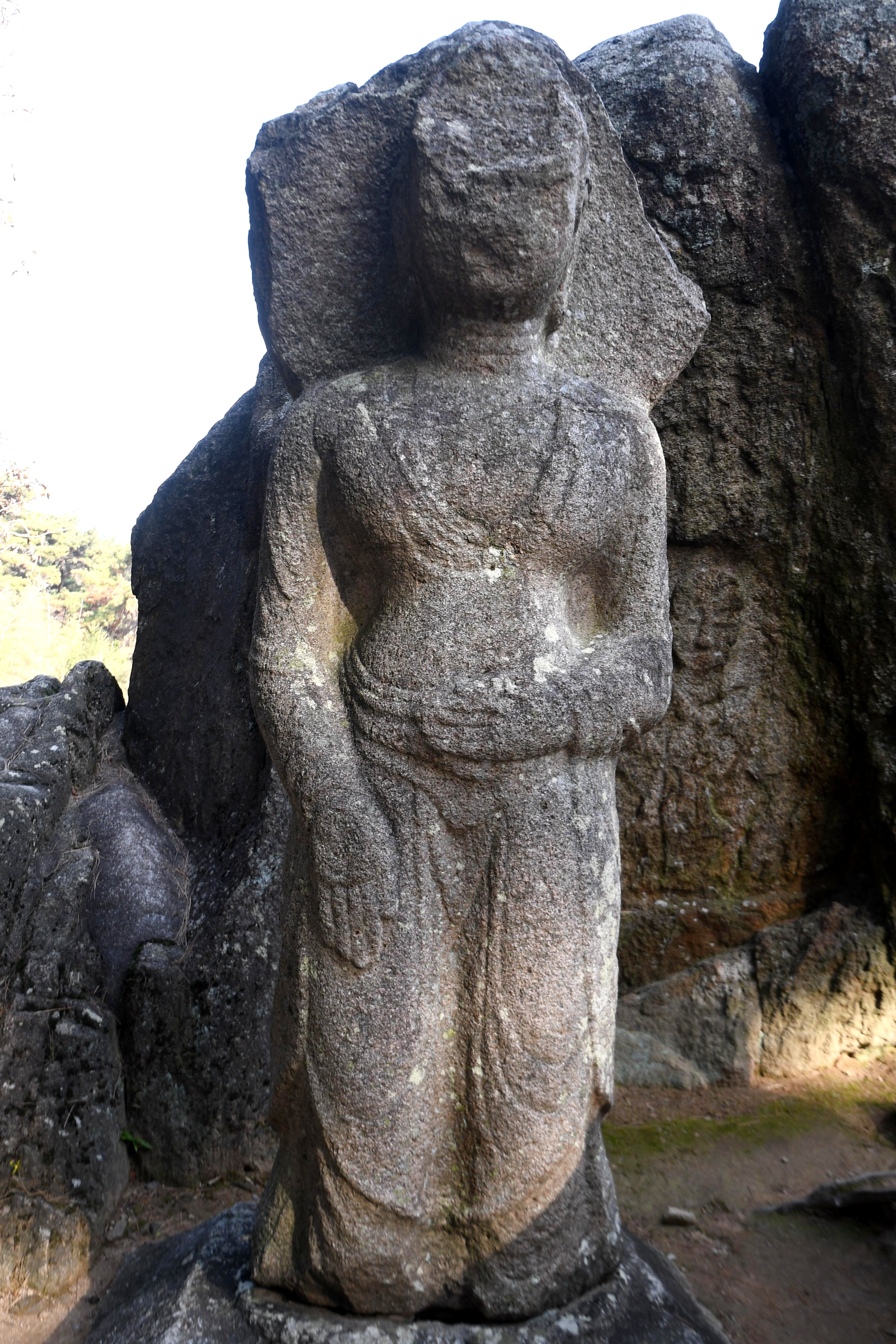 왼쪽 암면에 새겨진 나한상은 앳된 동안(童顔)의 모습과 두 손을 가슴에 모아 옷자락으로 덮어 내린 동자승 모습이다.