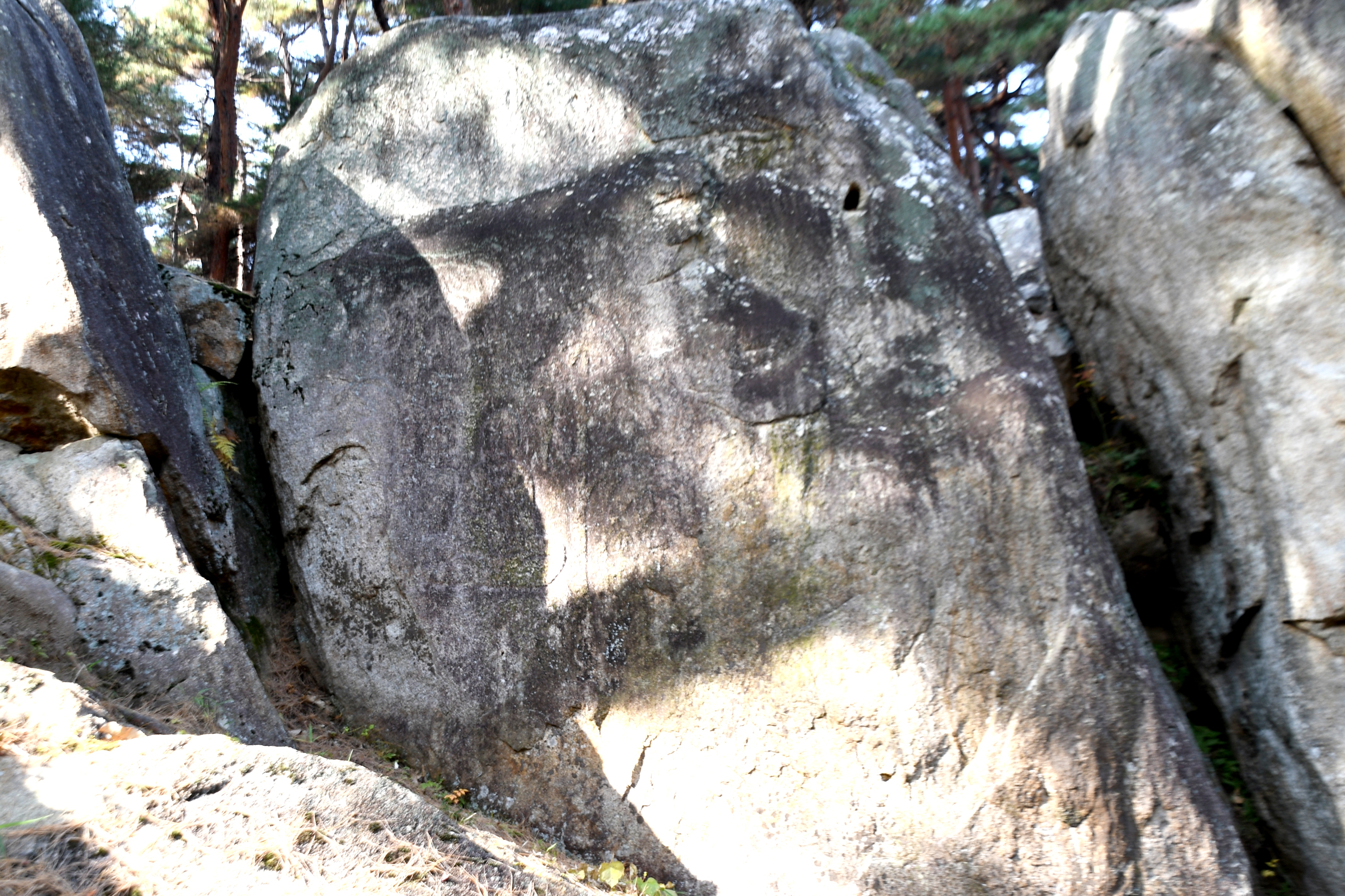 바위 남면은 산등성이와 연결되어 한 단 높은 대지를 이루고, 동·북·서면은 이보다 한 단 낮아 바위의 전체 높이가