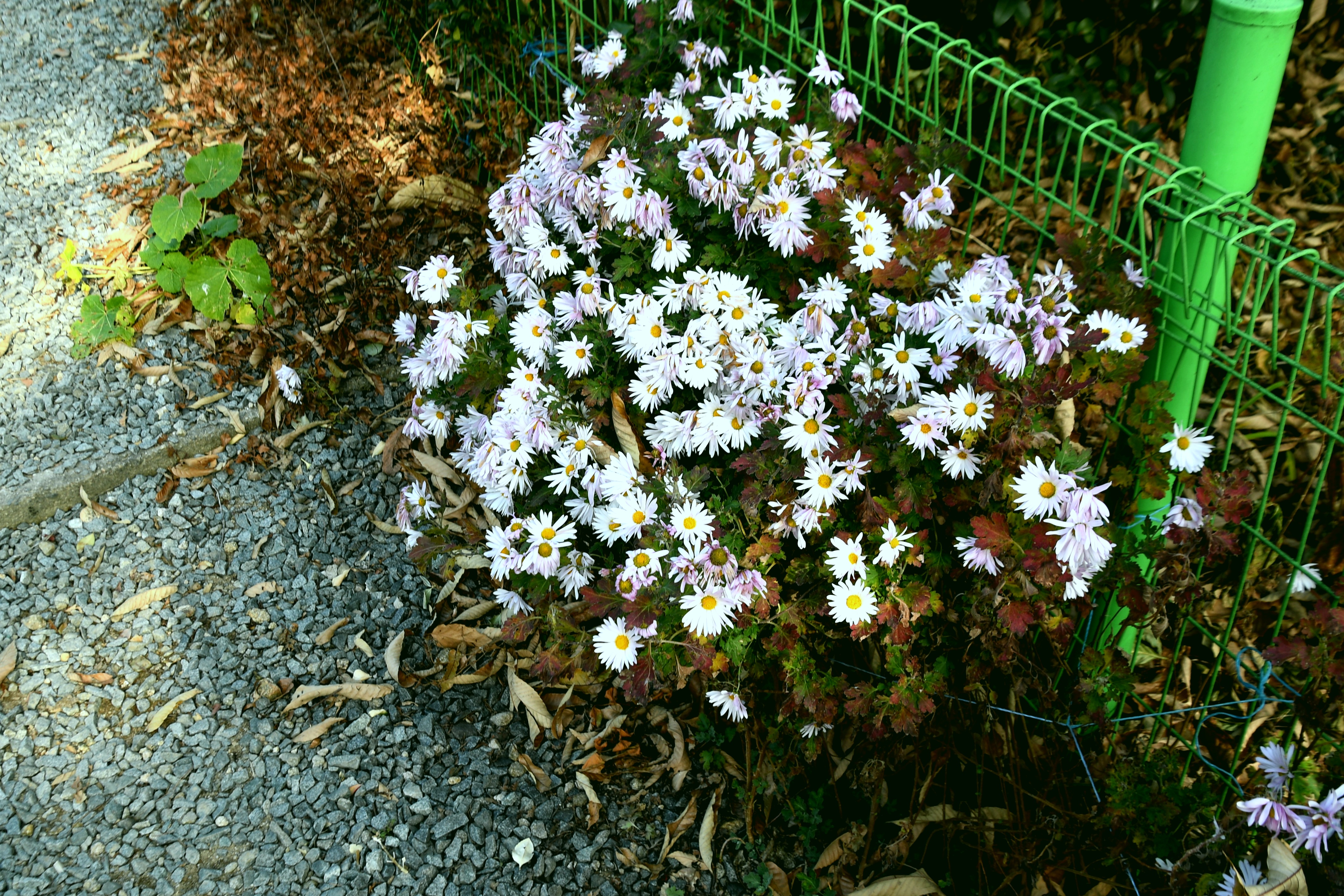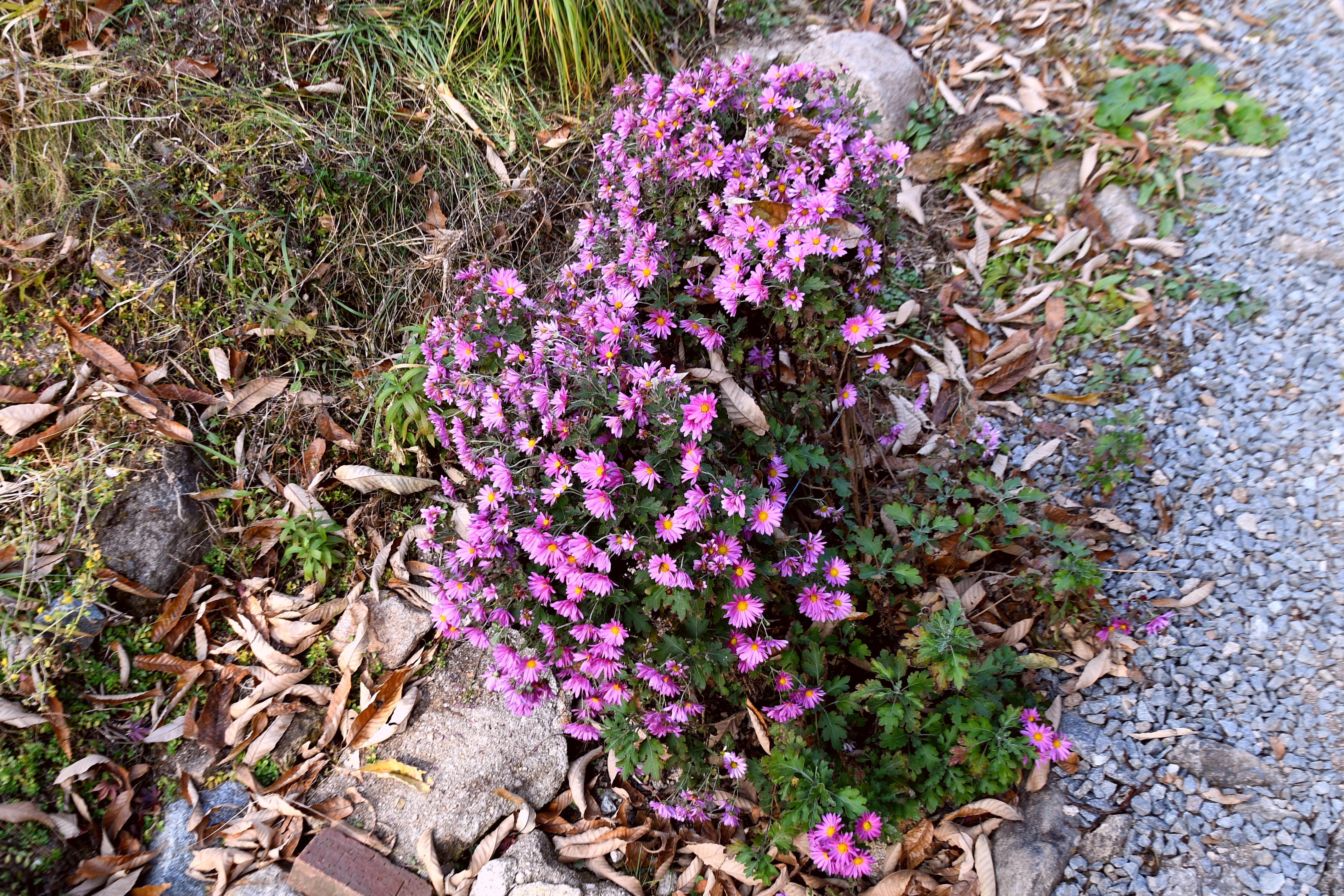 주차장 언덕에는 아스타 국화 같은데 시들시들 힘이 없어 보인다