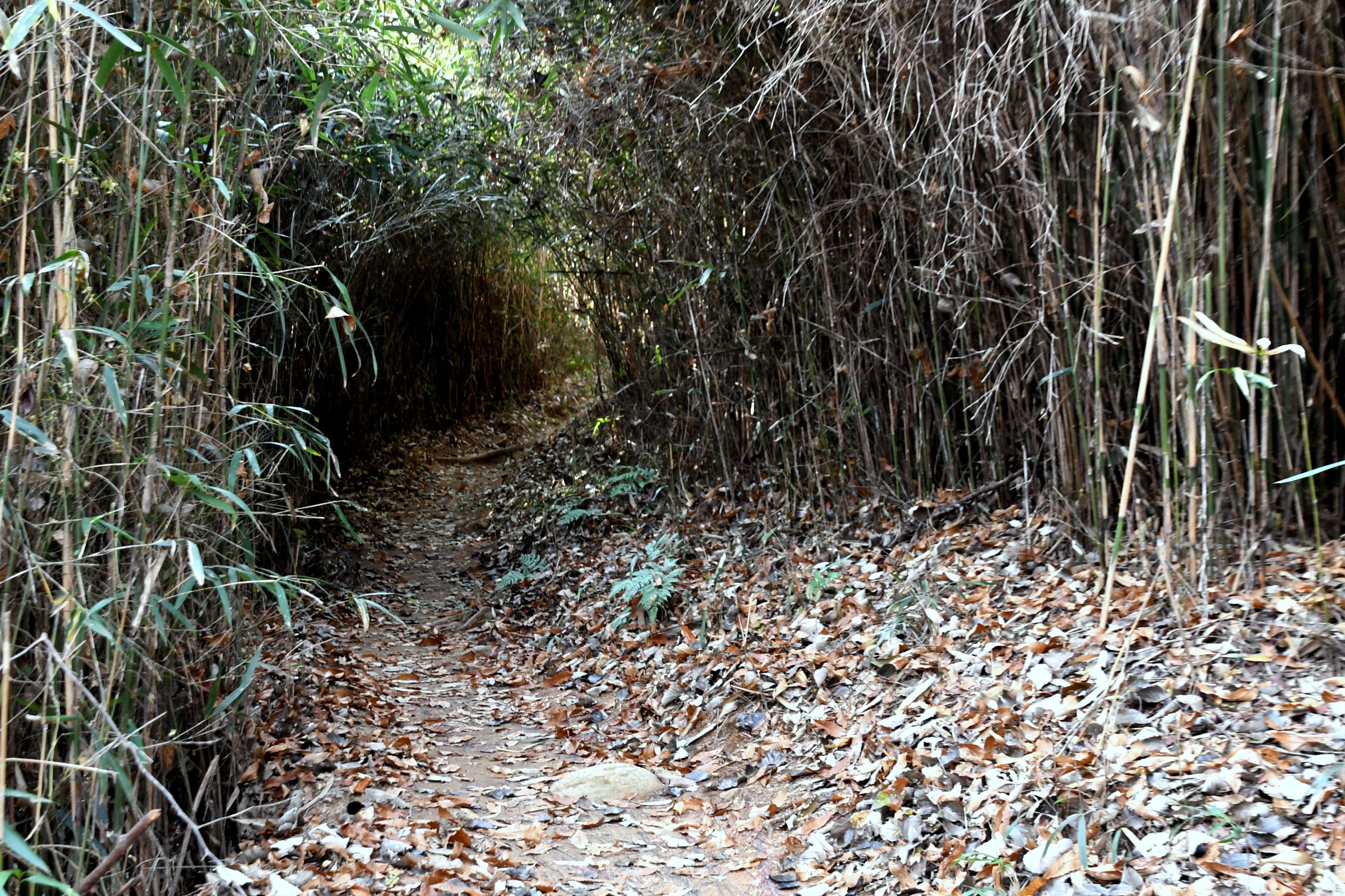 300여 m쯤 오르니 신우대 밭이 나오고 터널이다