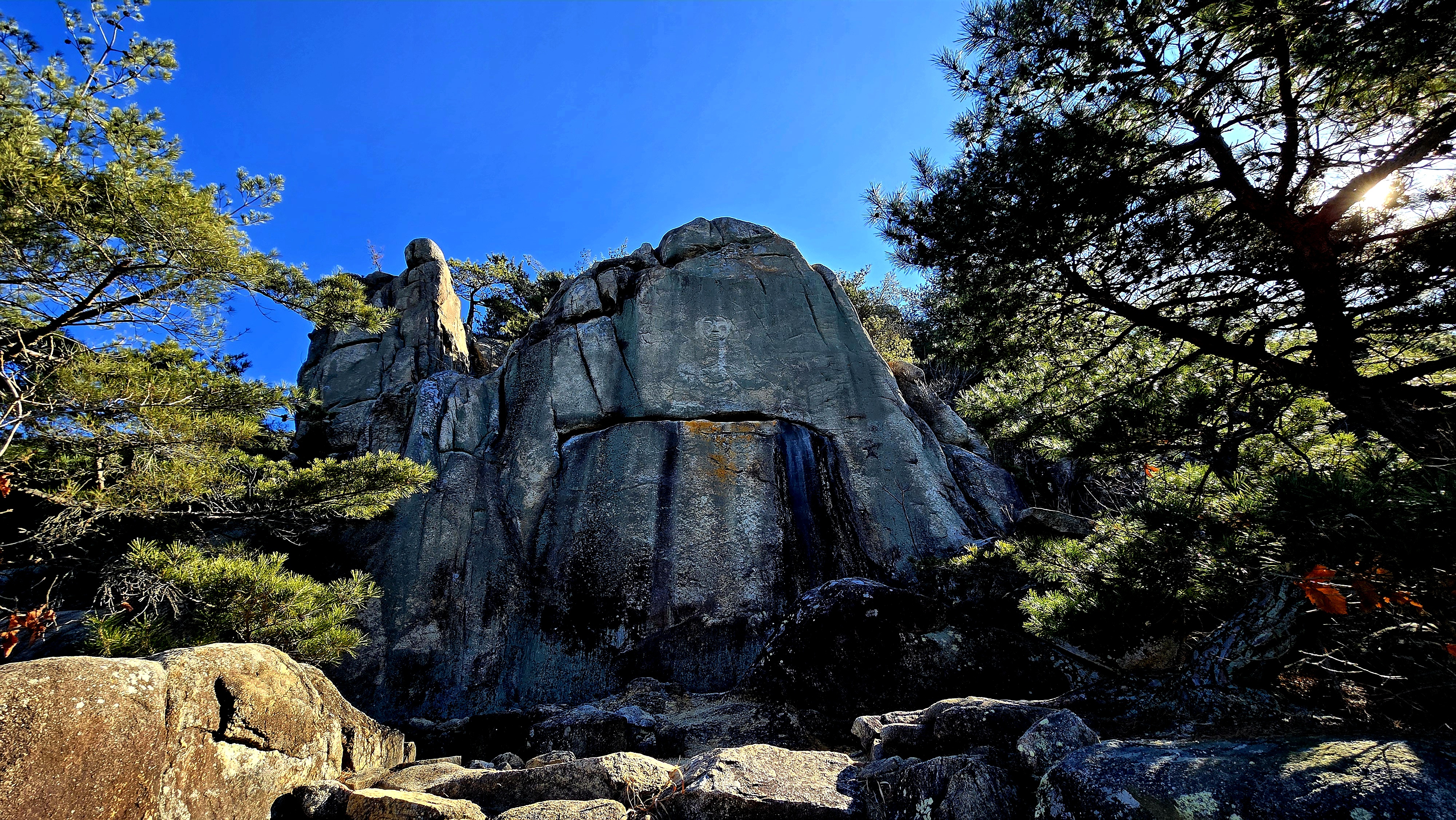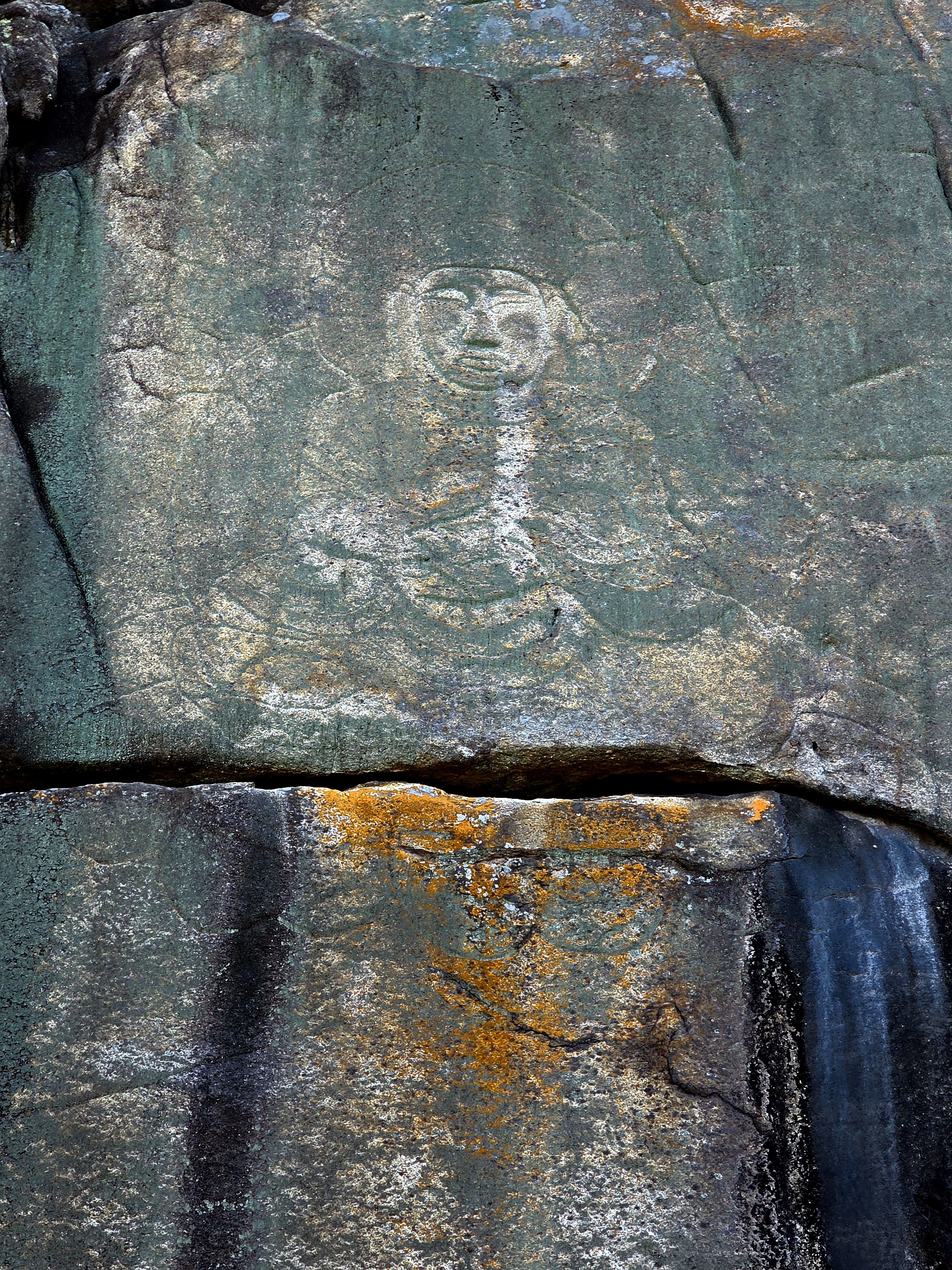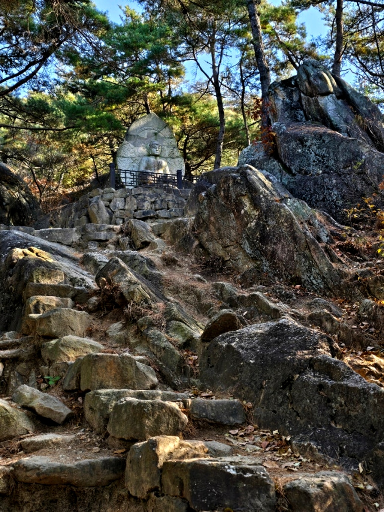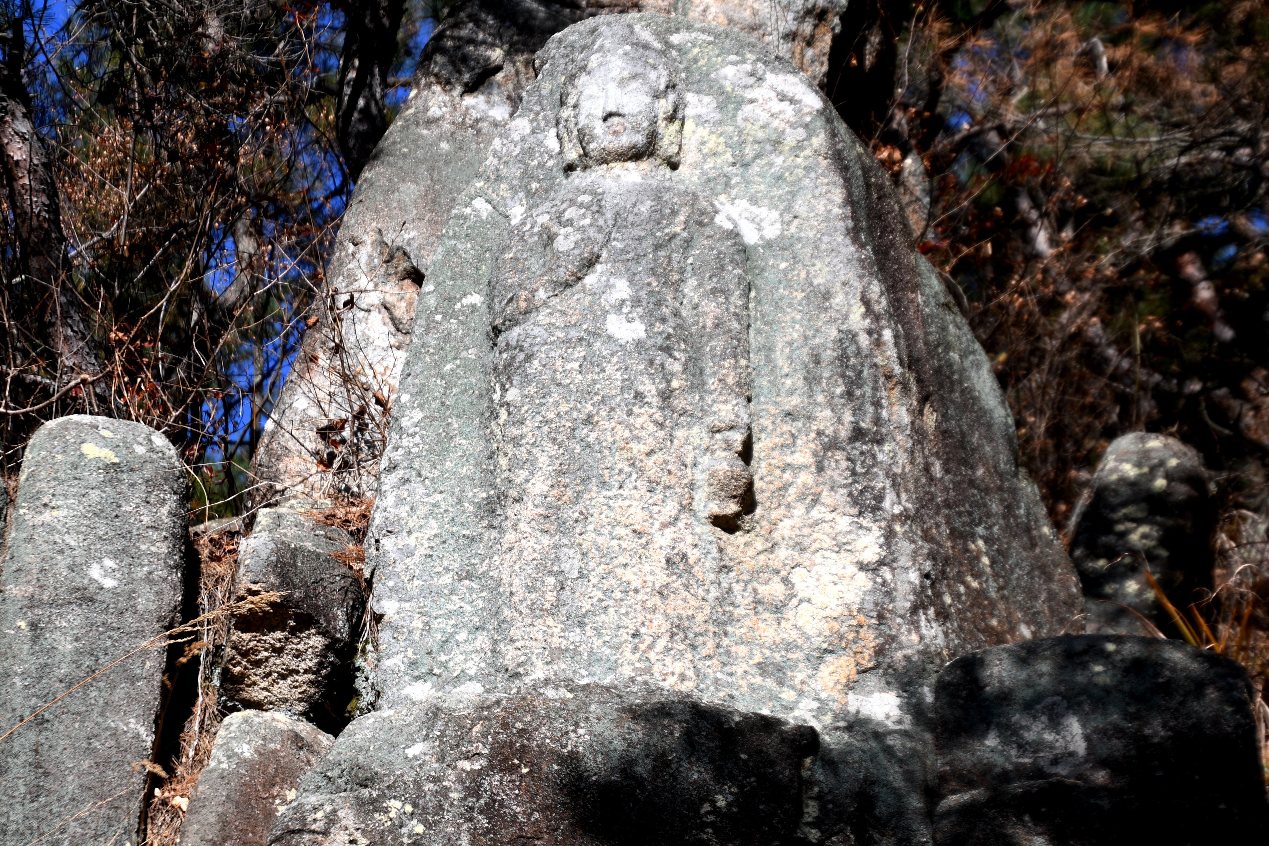 거대한 자연석에 조각되어 선각임에도 당당한 불신에 위엄이 느껴진다.