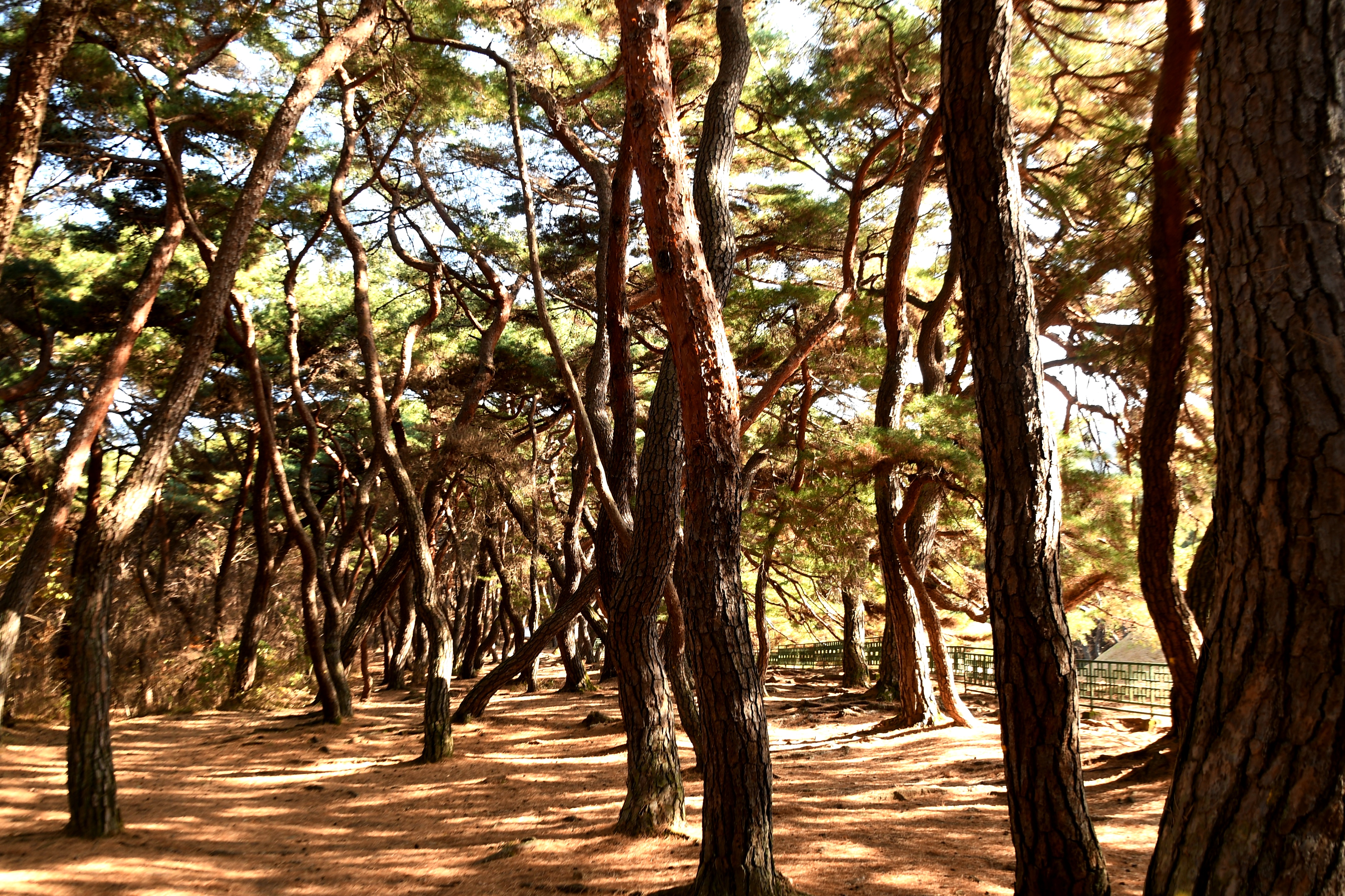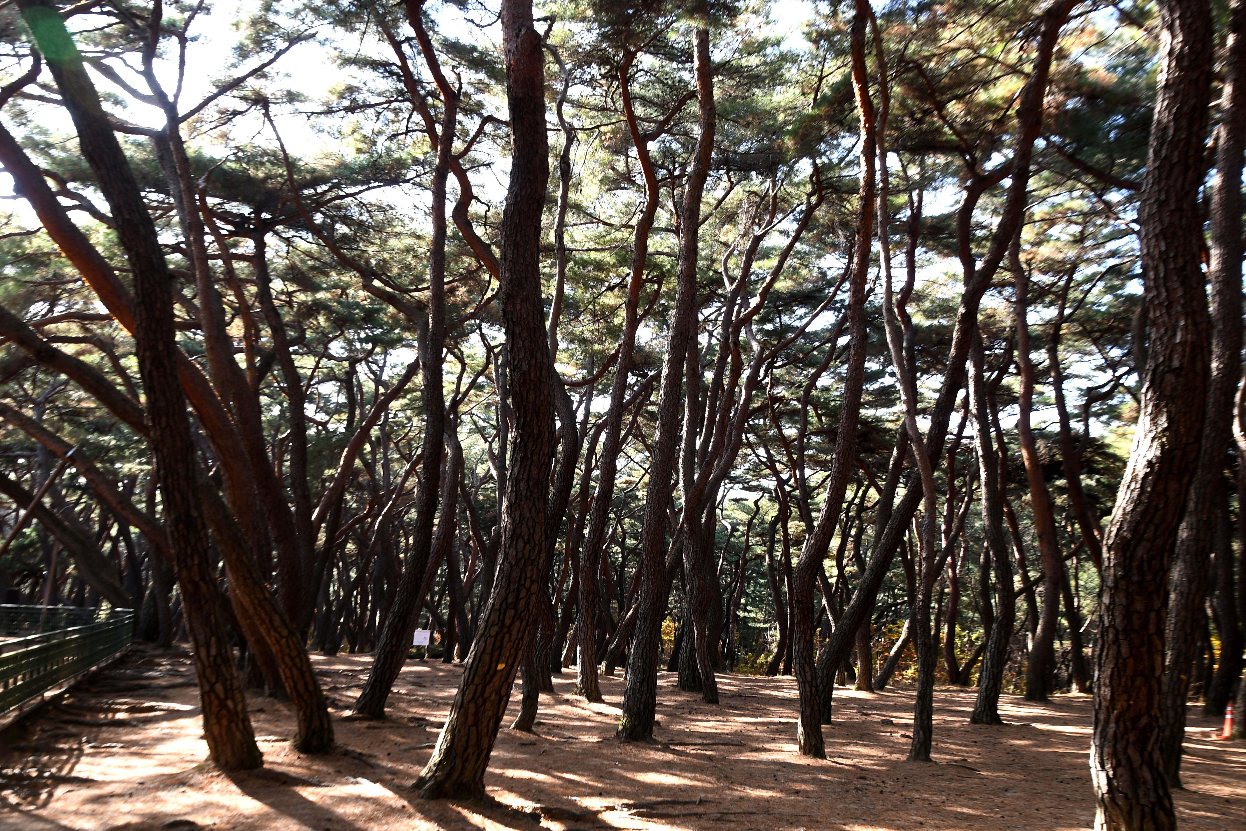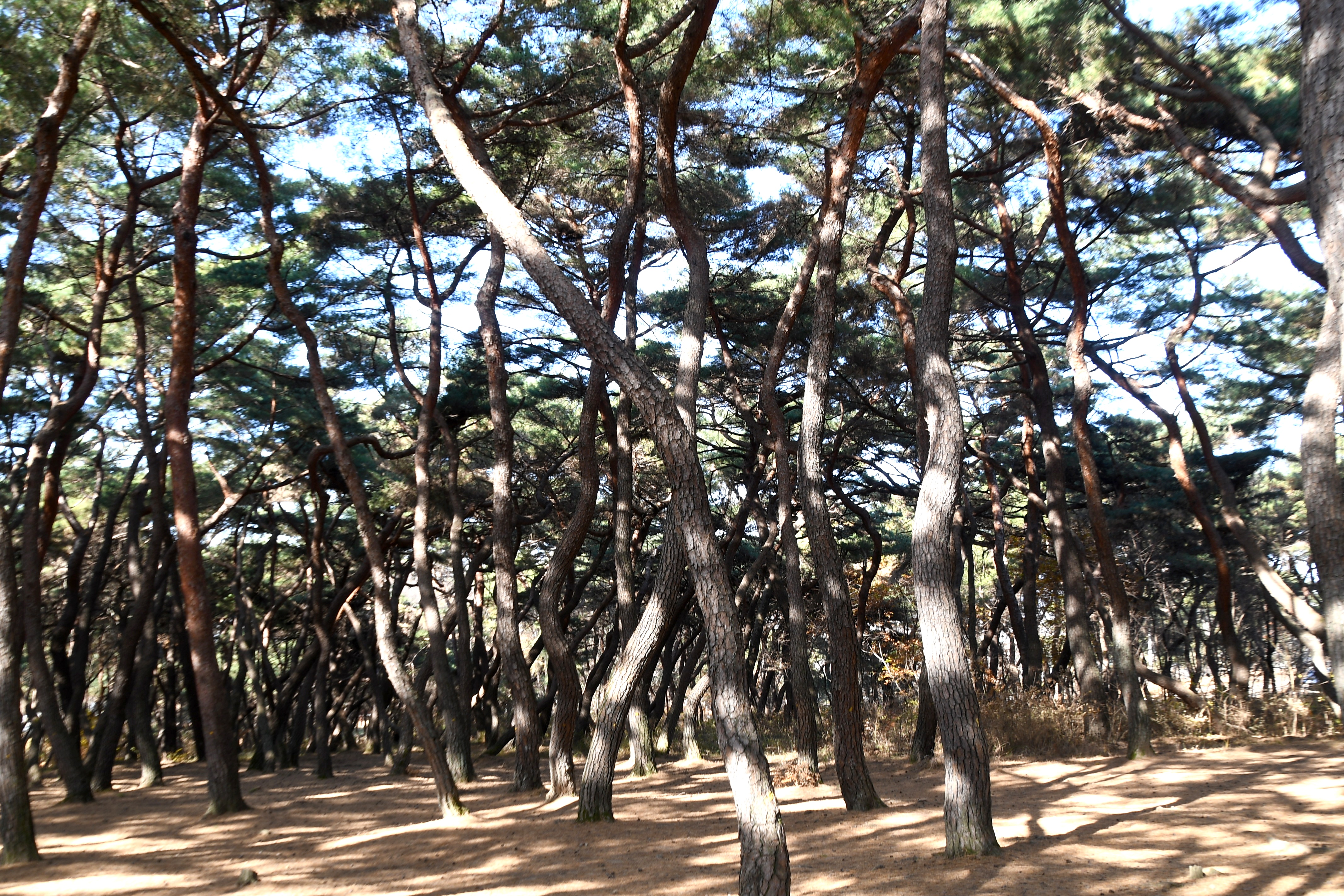 알려져 있는데, 일반적인 곧은 소나무와 달리 자유롭게 휘어진 모양이 몽환적이고 신비로운 분위기를 자아냅니다.