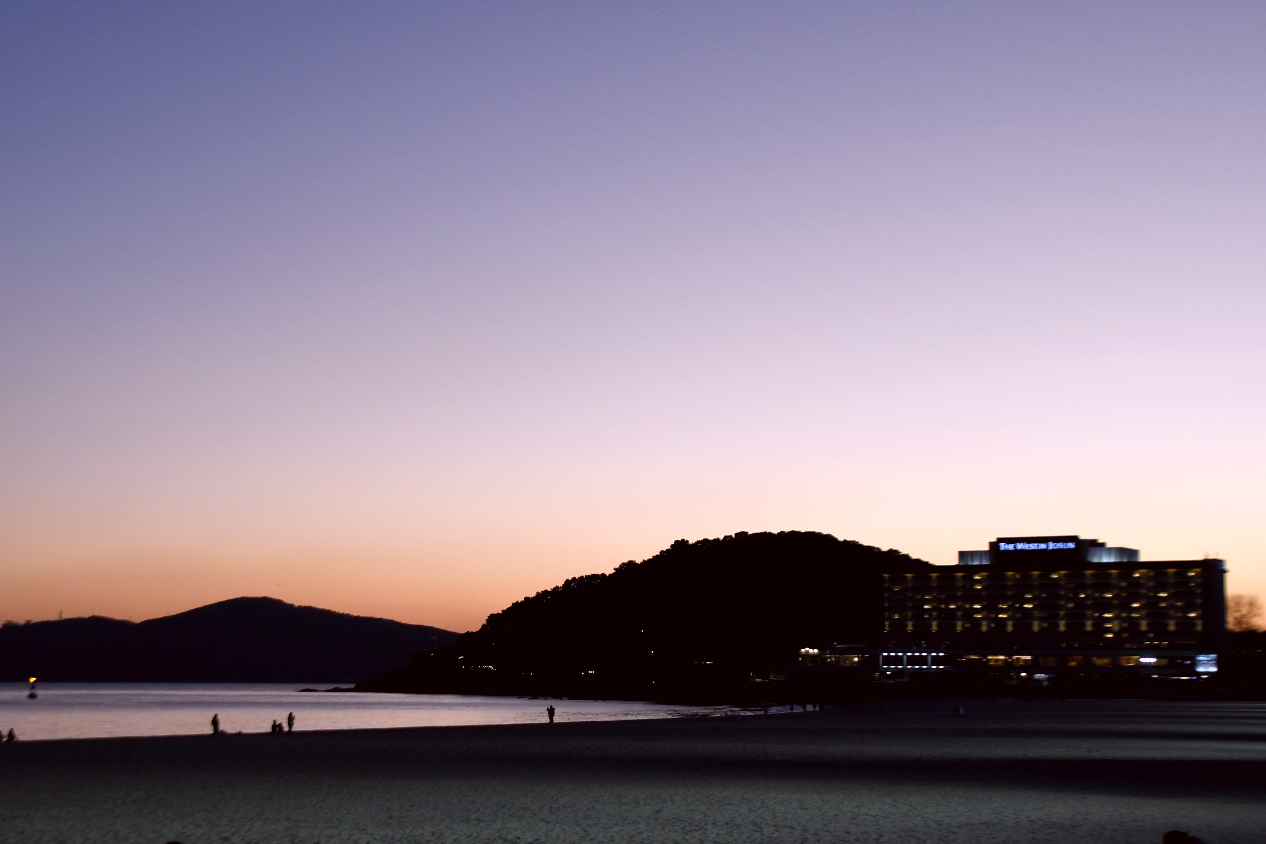 조선비치호텔 뒤로는 마린시티 고층아파트
