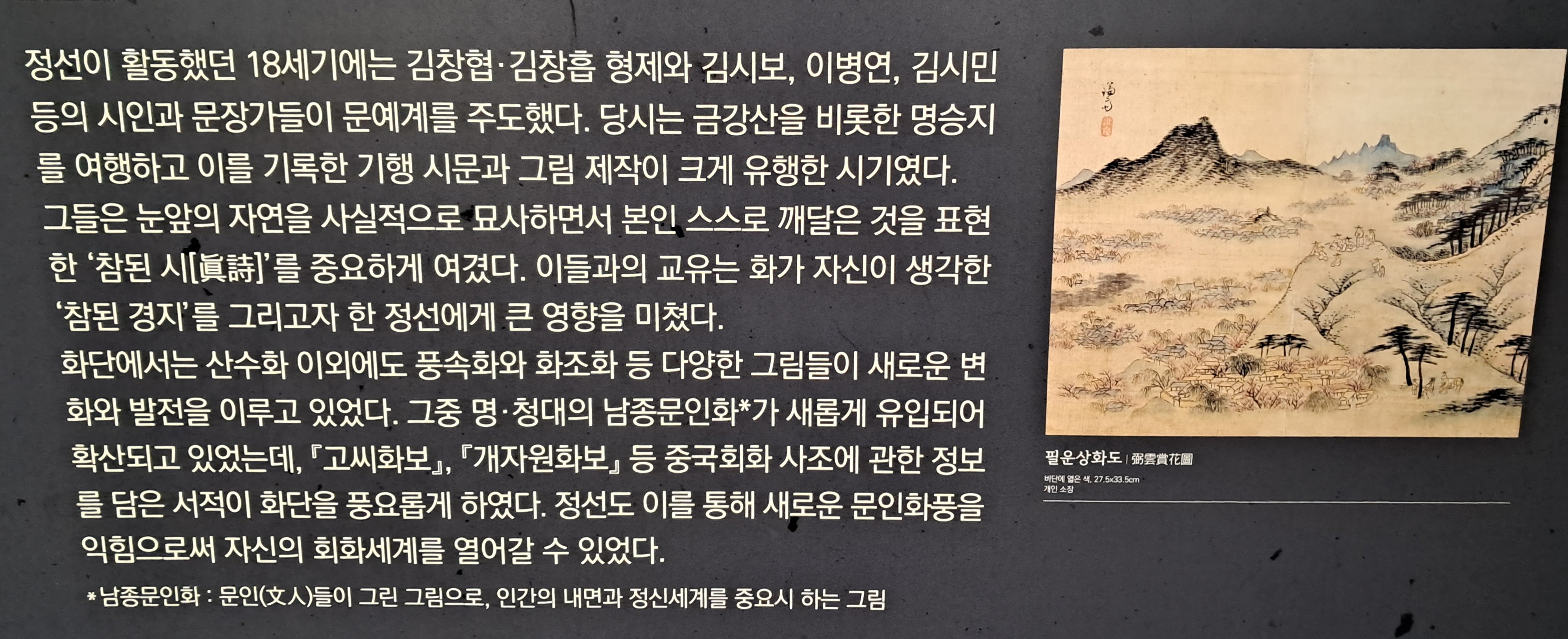 이 시기를 ‘진경(眞景)시대’라 한다. 겸재 정선은 진경 문화의 선봉에 있었다.