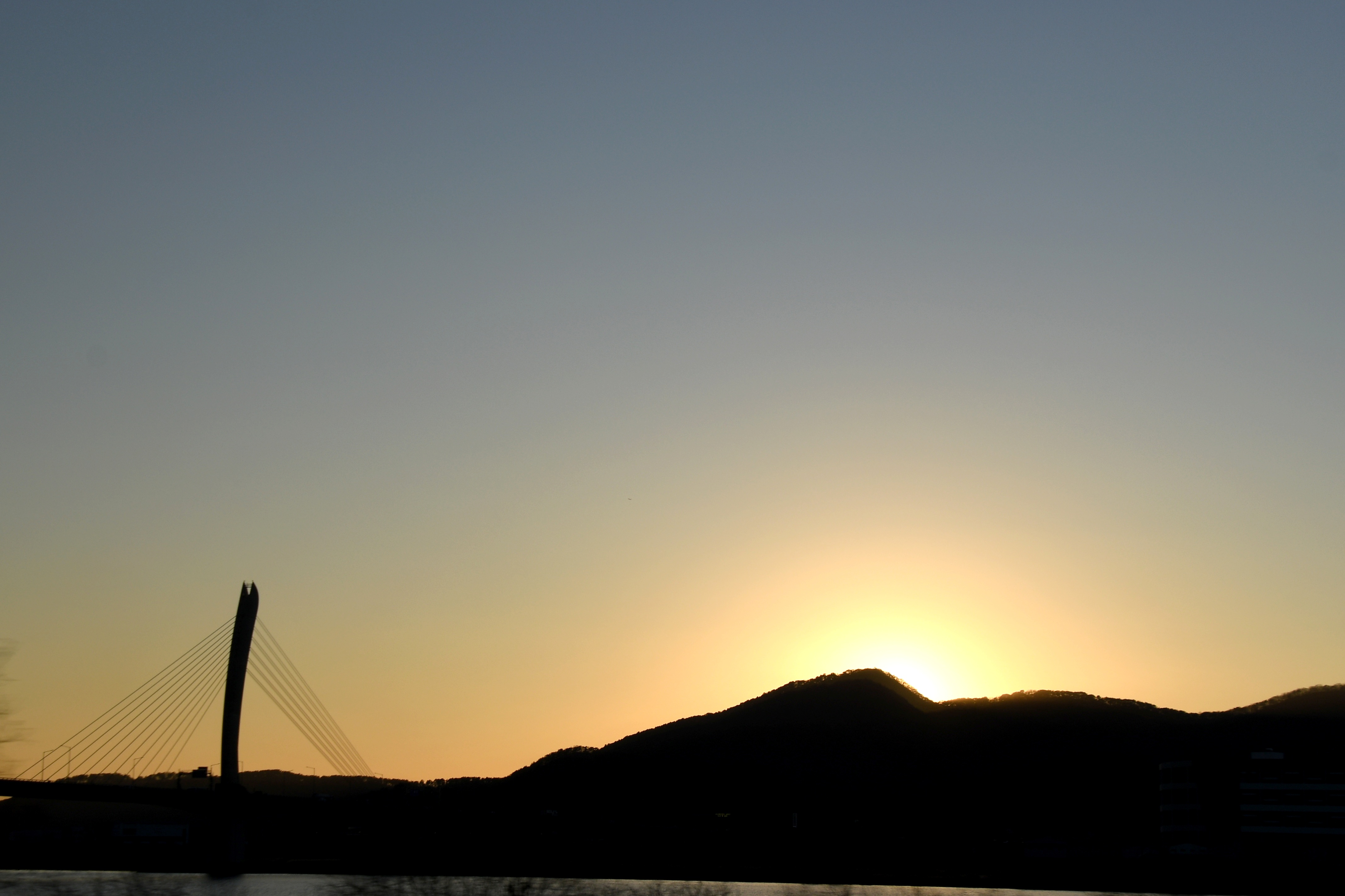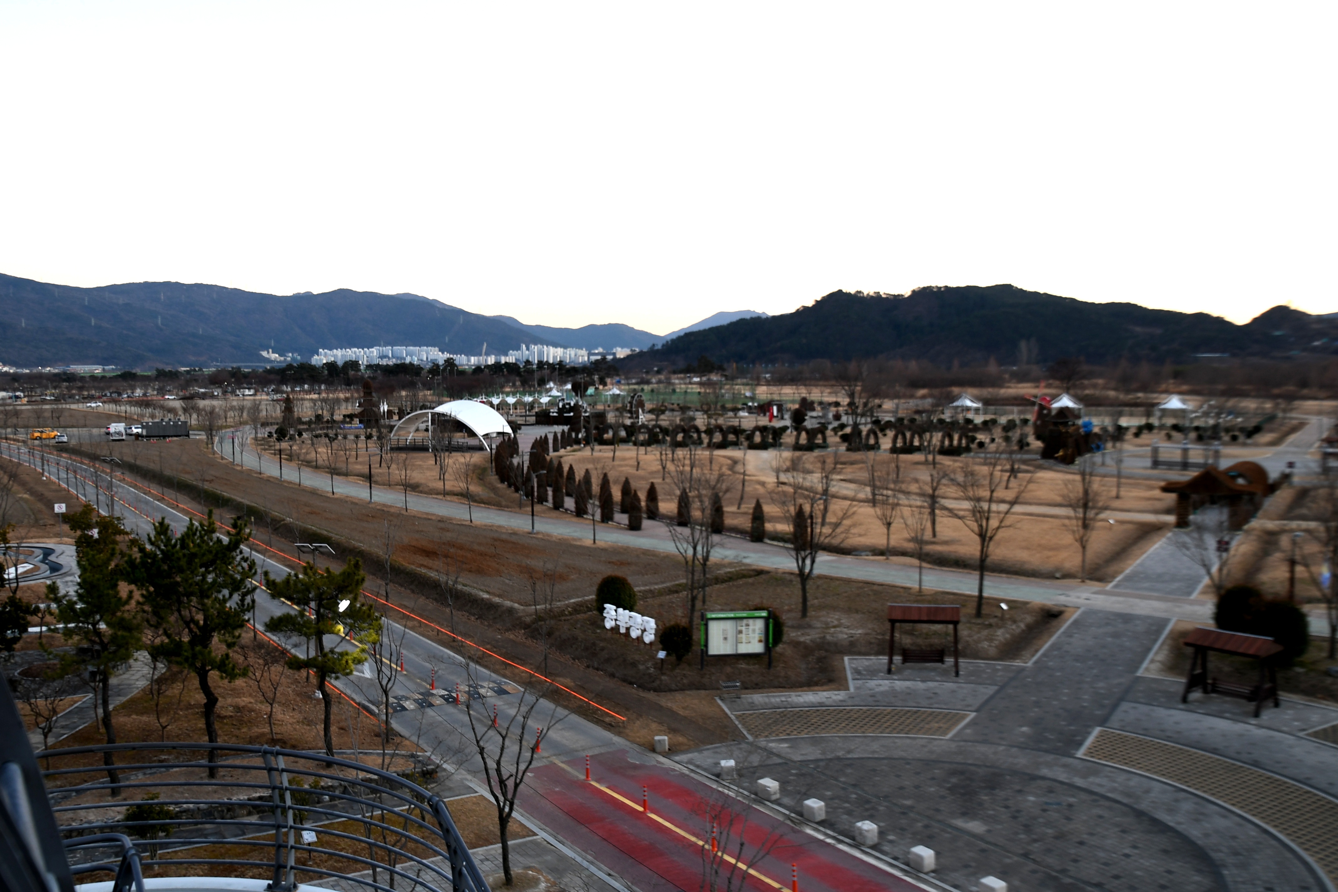 17시 15분에 구름다리에서 바라보니 아직 불빛이 보이지 않는다