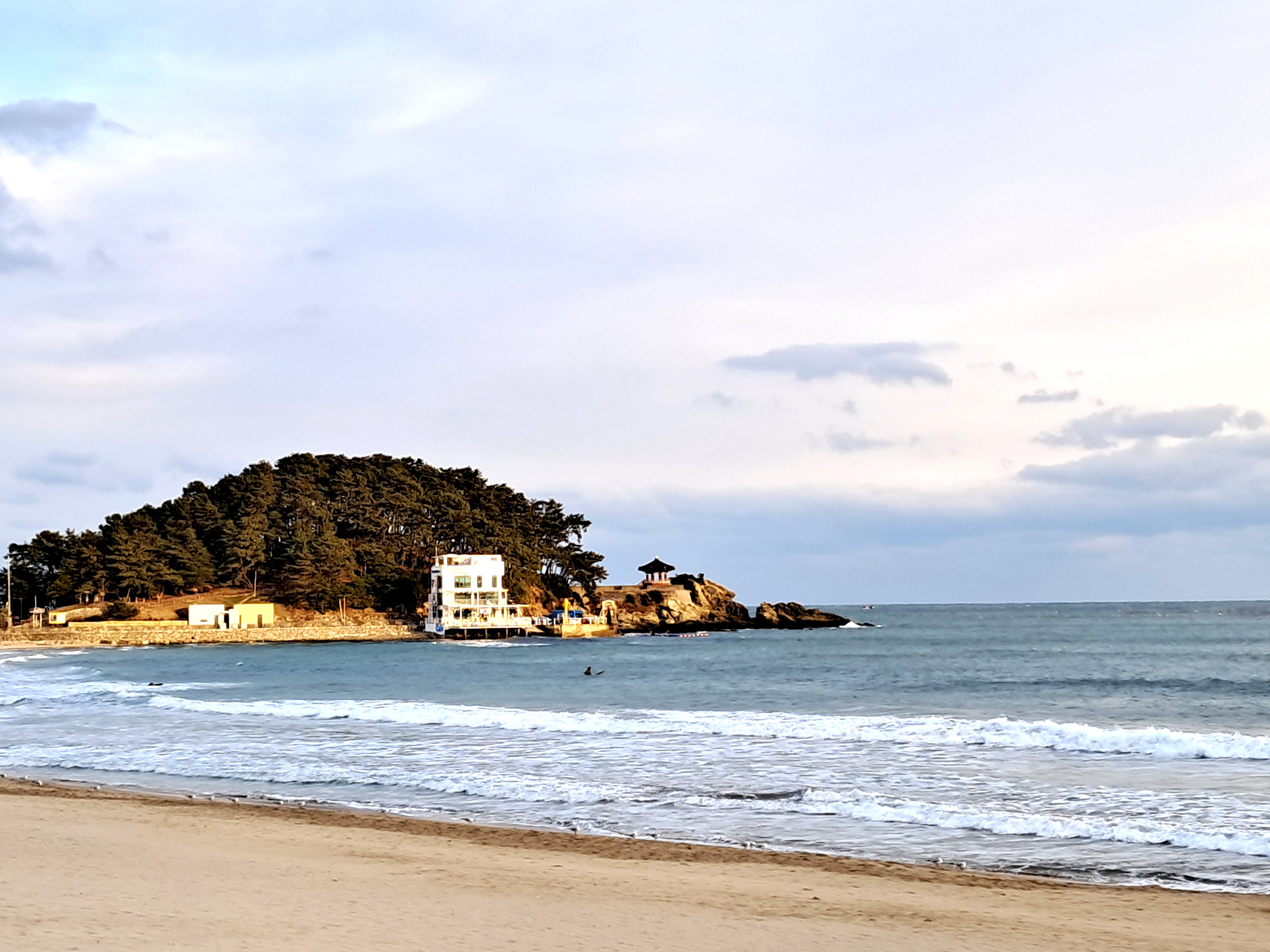 송정해수욕장과 죽도공원과 송일정이 보인다 새해 해맞이 명소다