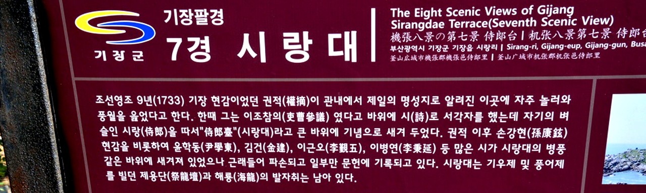 영조 8년(1733) 이조참이 기장현감으로 부임 한 권적에 의하여 새겨진 시랑대와