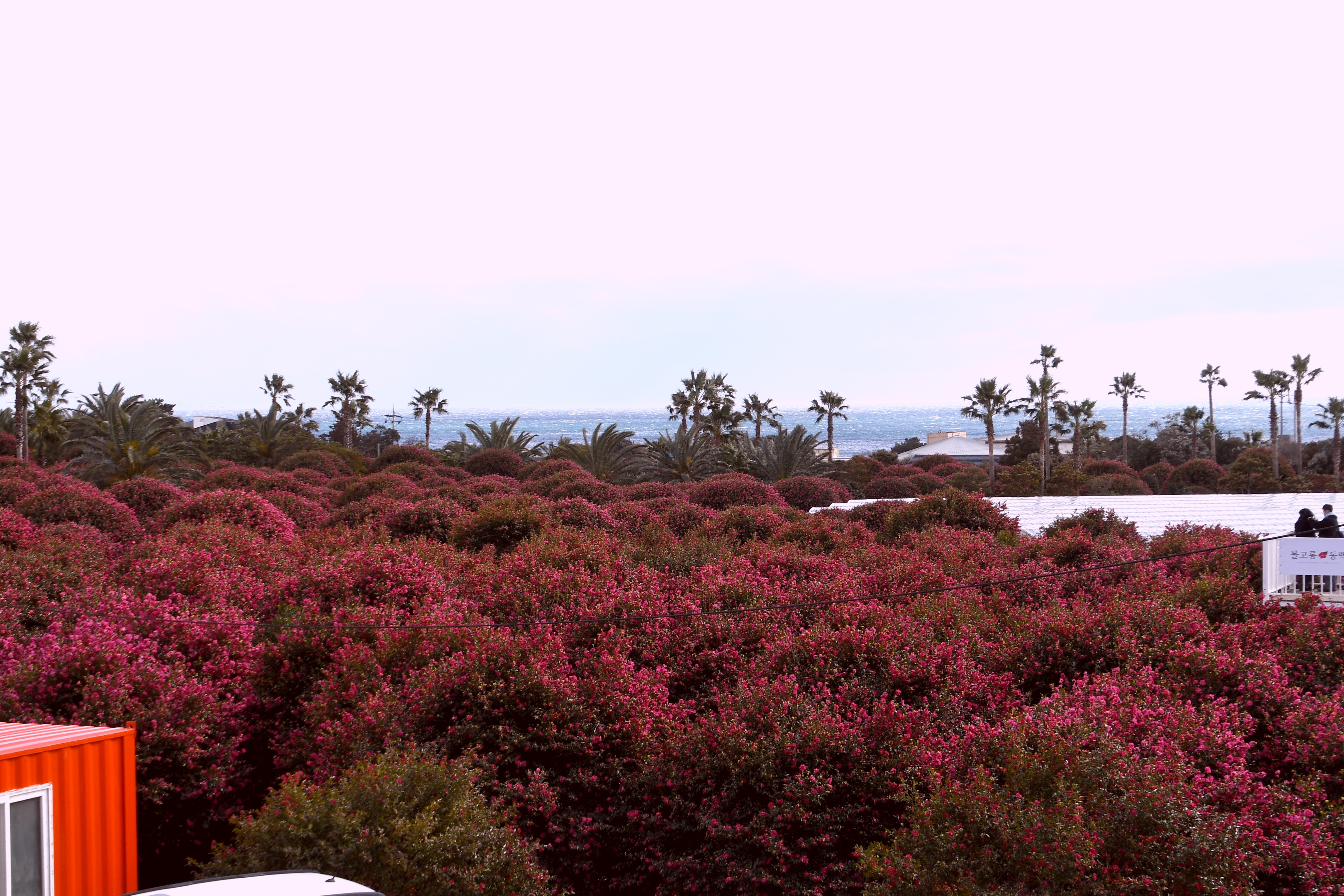 동백수목원에서 나와 위미리 동백나무군락지로 가면서 바라본 볼고롱동백나무 숲 (1/21)