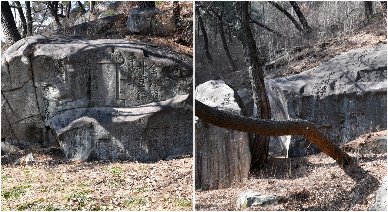 우리나라 사람들은 족적을 남기기를 좋아해서 이렇게 바위에 많은 사람들이 이름을 새겨 놓았다
