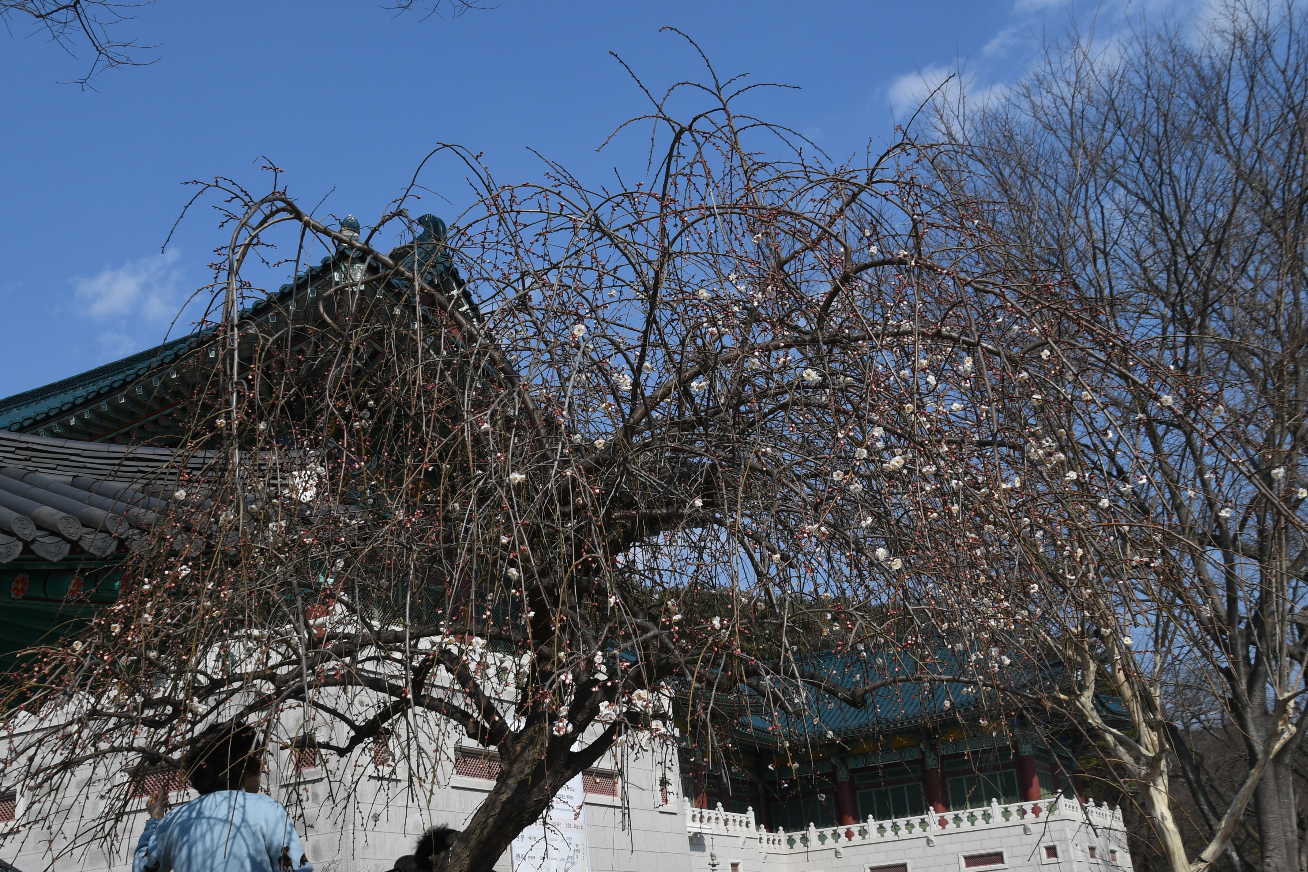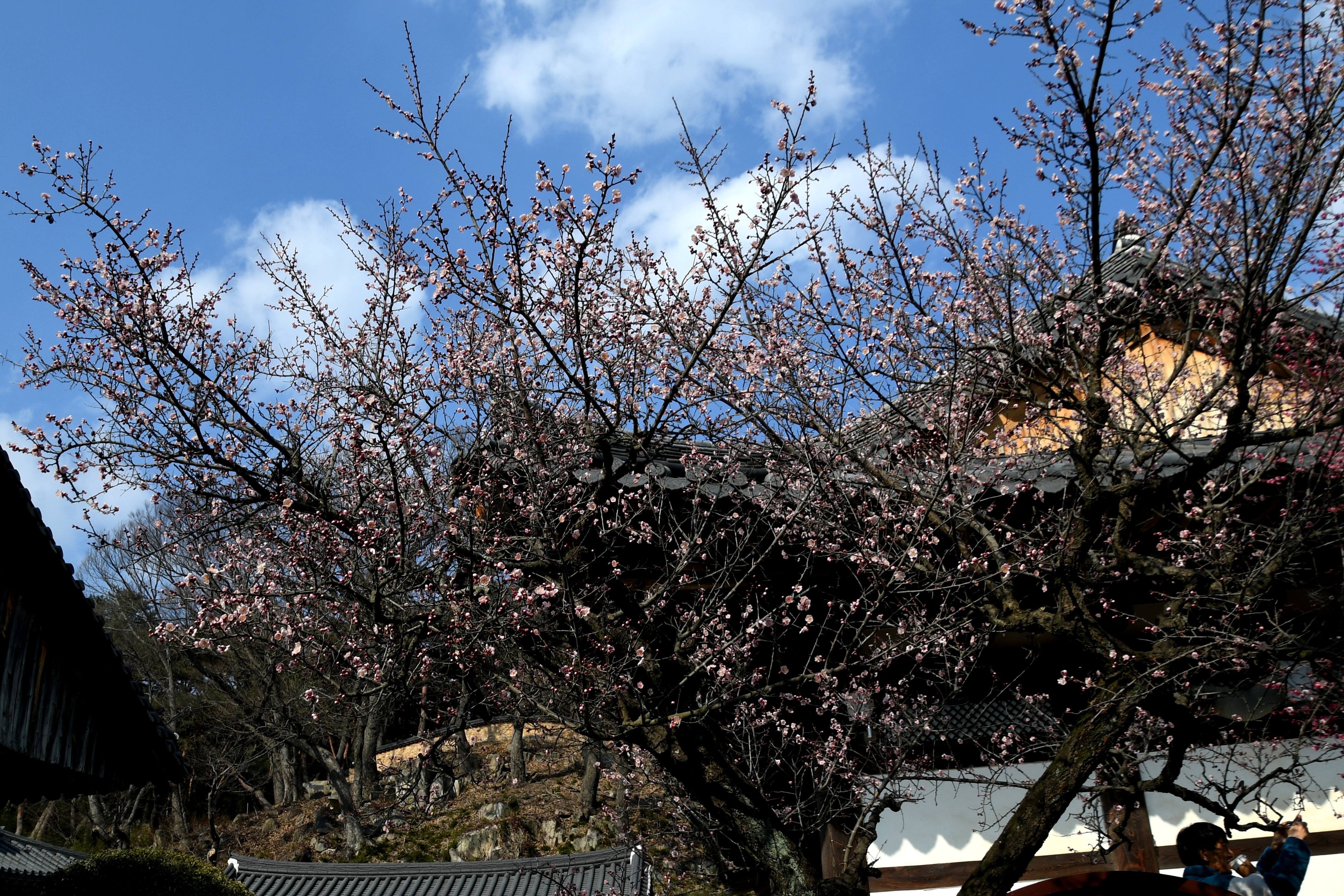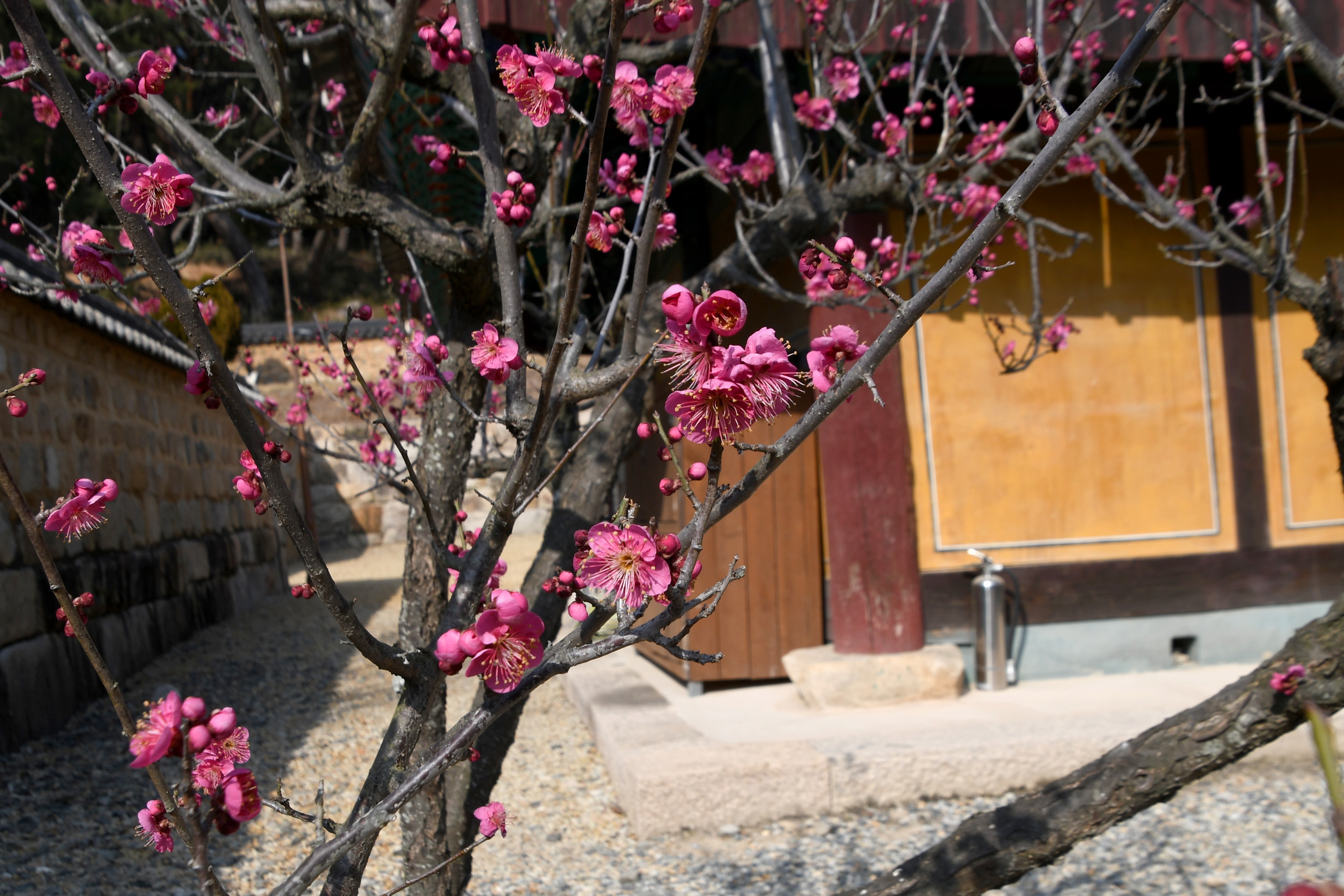 극락전에서 영각 쪽으로 진입을 하면 만첩홍매화와 홑백배화 두 그루가 나오는데