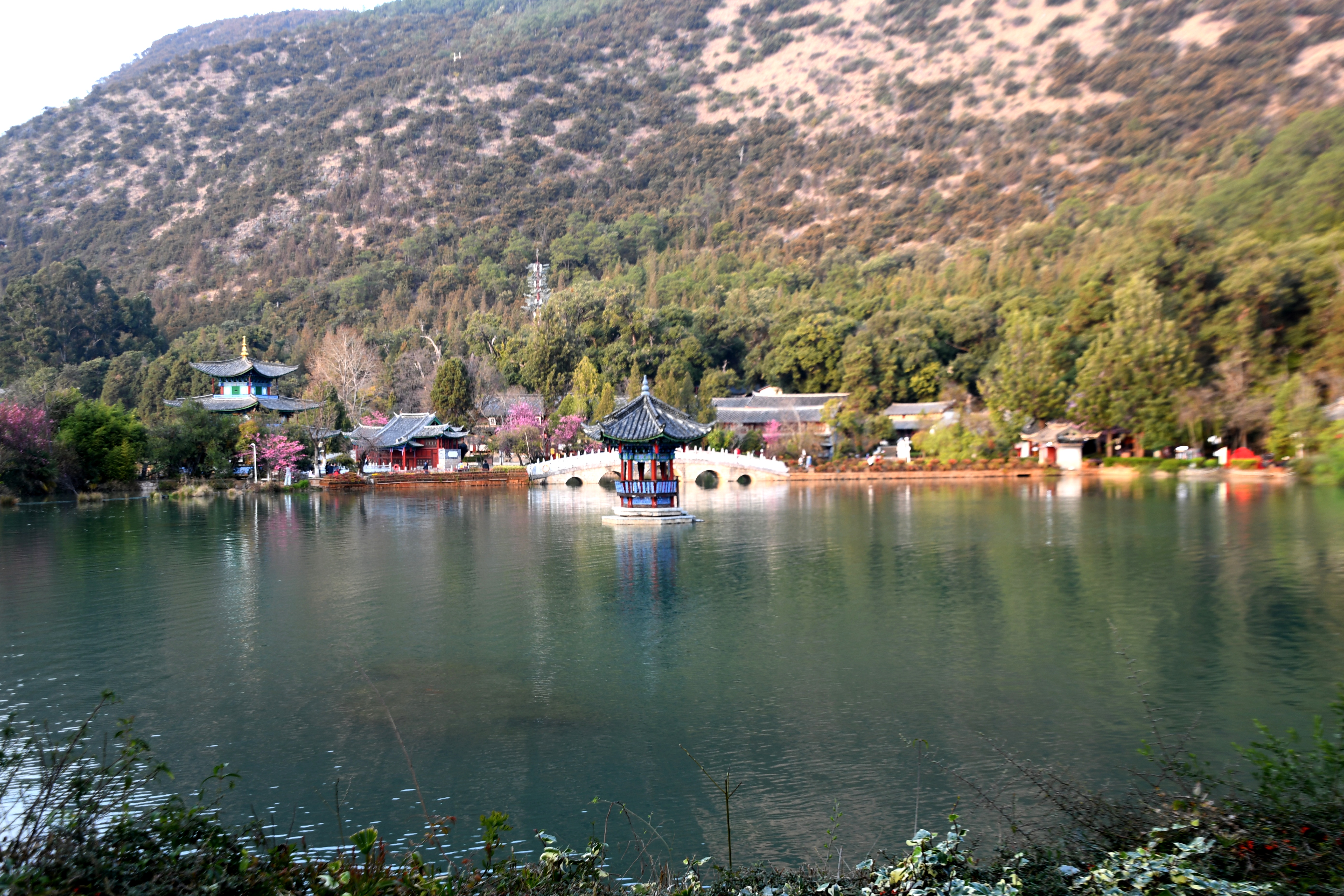 리장 흑룡담공원(黑龍潭公園)은 옥룡설산의 빙하수가 모인 호수로, 옥룡설산의 아름다운 풍경과 고대 건축물이
