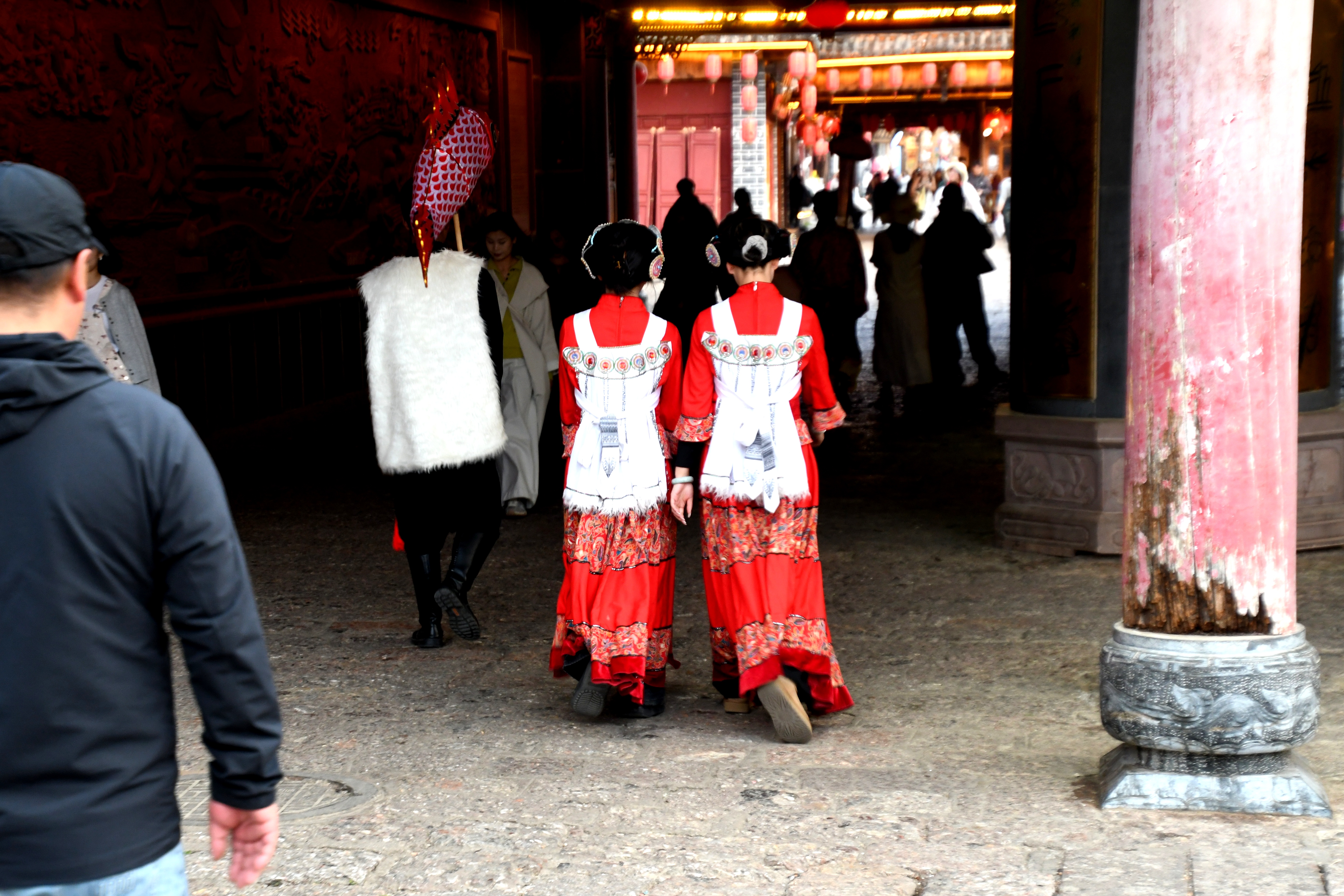 나시족 여성이 걸어가는 모습