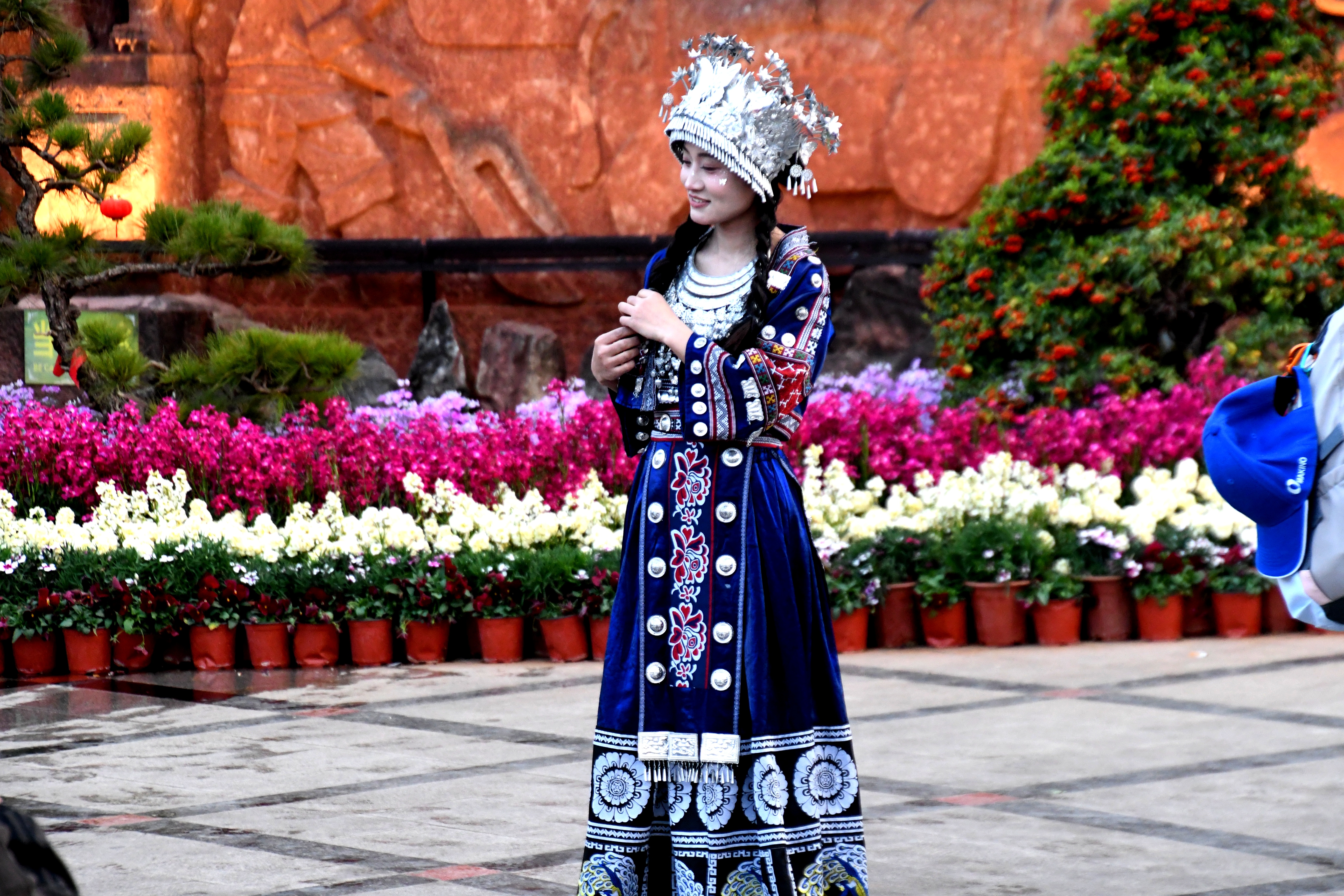 중국소수민족인 묘족의 전통의상을 입은 여인