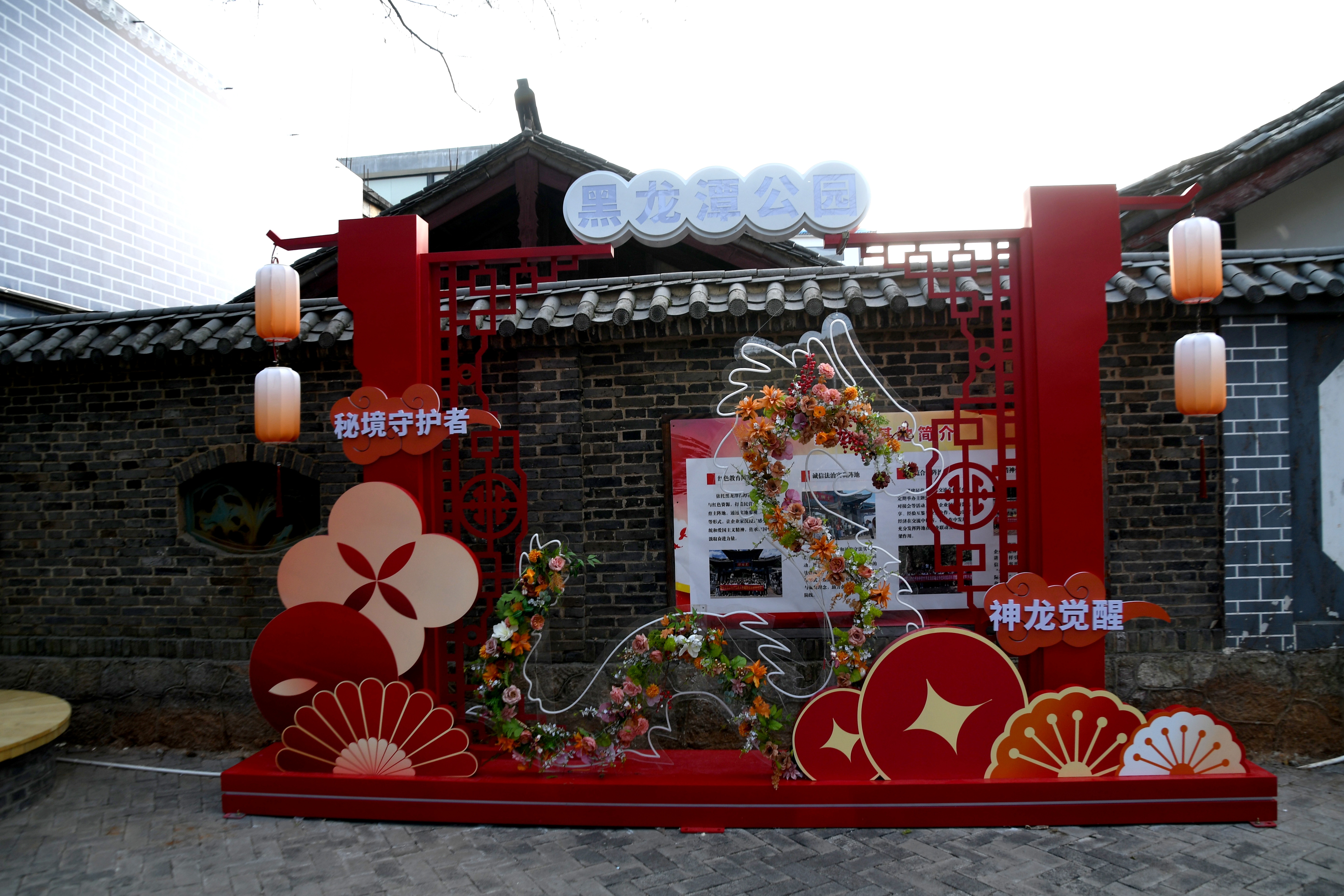 흑룡담공원(춘제기간 동안 설치된 화려한 등불장식과 전통적인 건축요소를 보여준다)