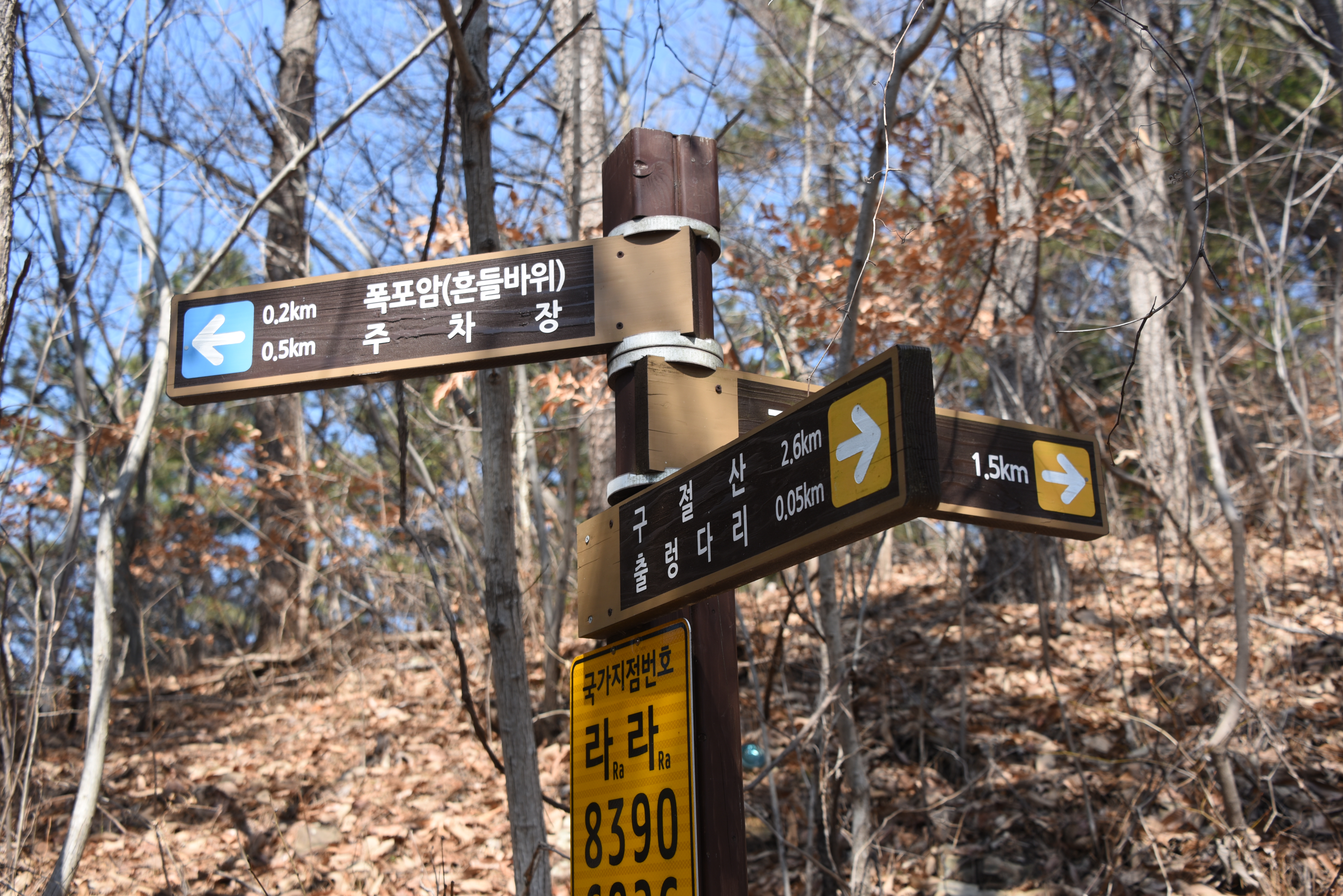 이정표를 보지만 구절산까지는 오를 수 없고 출렁다리까지만 간다
