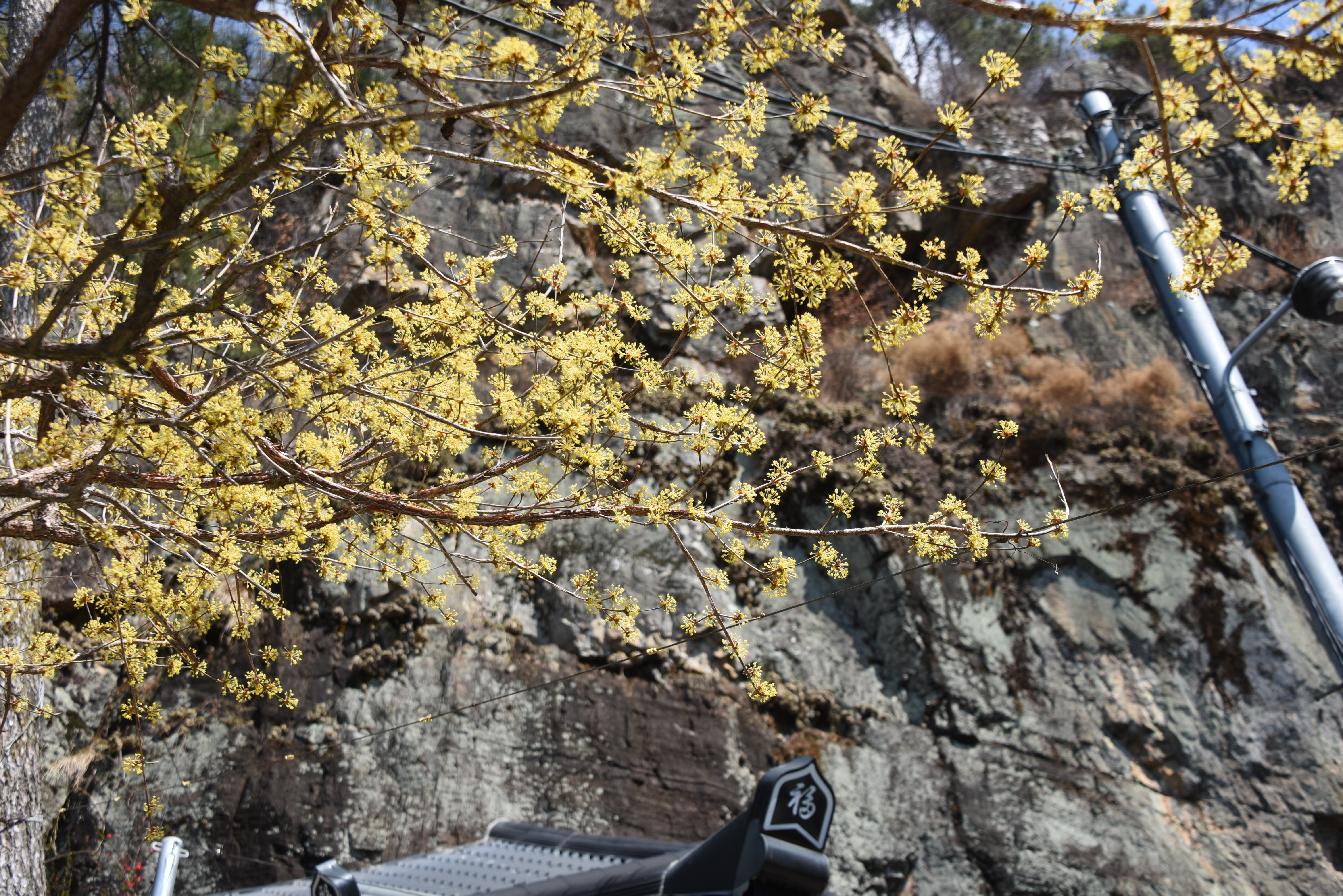 양지쪽이라 산수유도 곱게 피어 있다