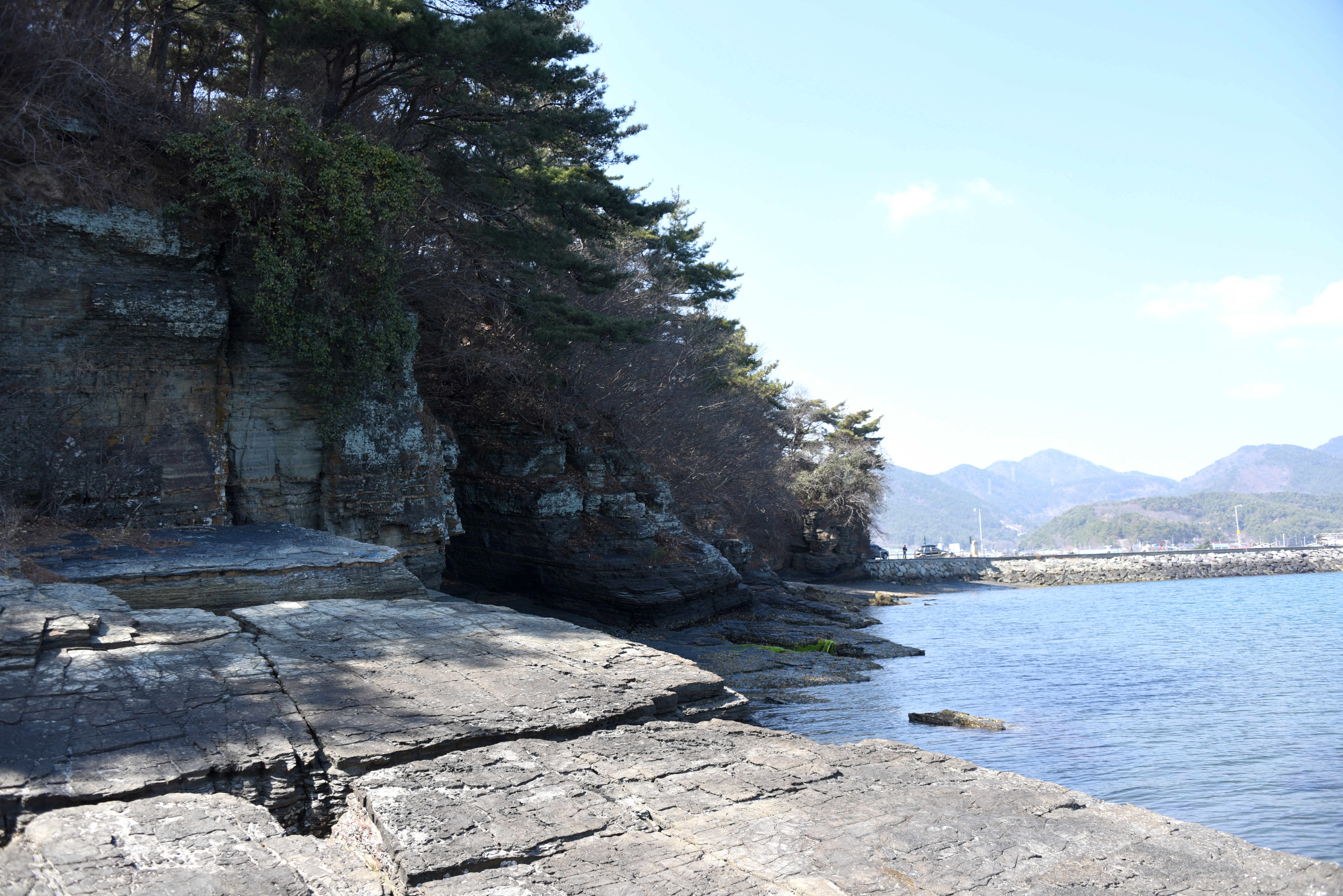 장여는 마치 상족암이나 부안 채석강 같이 수만 권의 책을 켜켜이 쌓아 놓은 듯한 수성암으로 형성되어 있다