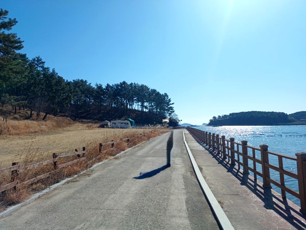 하얀 건물도 보이고 섬 같은 소나무 숲도 보이는데 과연 무슨 시설이 있을까 걸어 본다