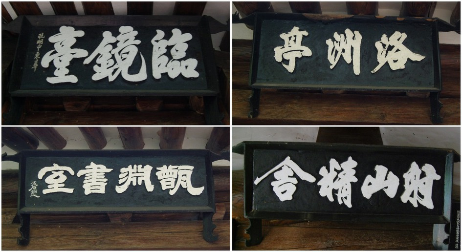 시계방향으로 임경대 낙주정 사산정사 증연서실이라는 현판들이 걸려 있다