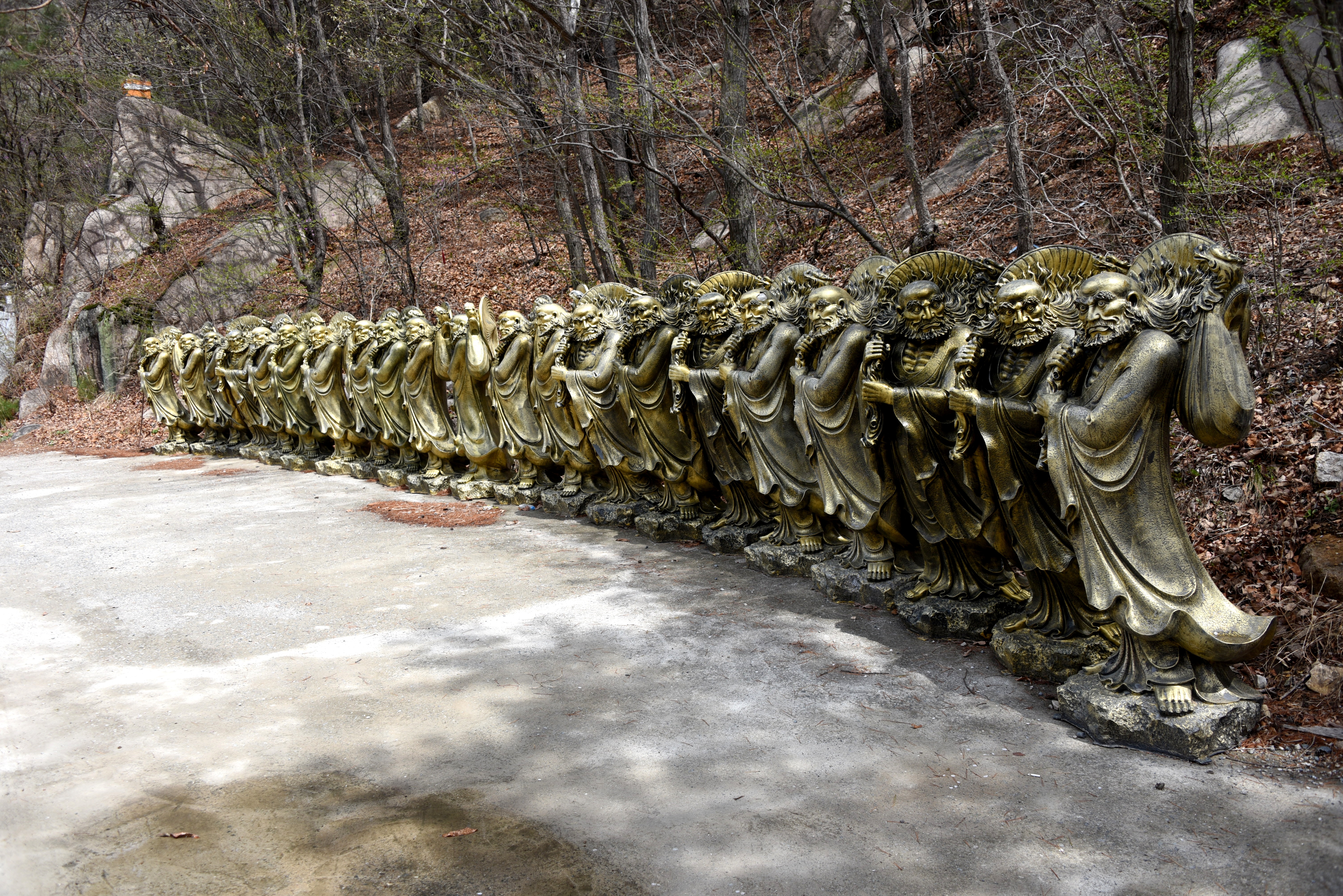 조계종 사찰로 입구에 12 지신상과 함께 포대화상, 보리달마, 지장보살, 관세음보살 등