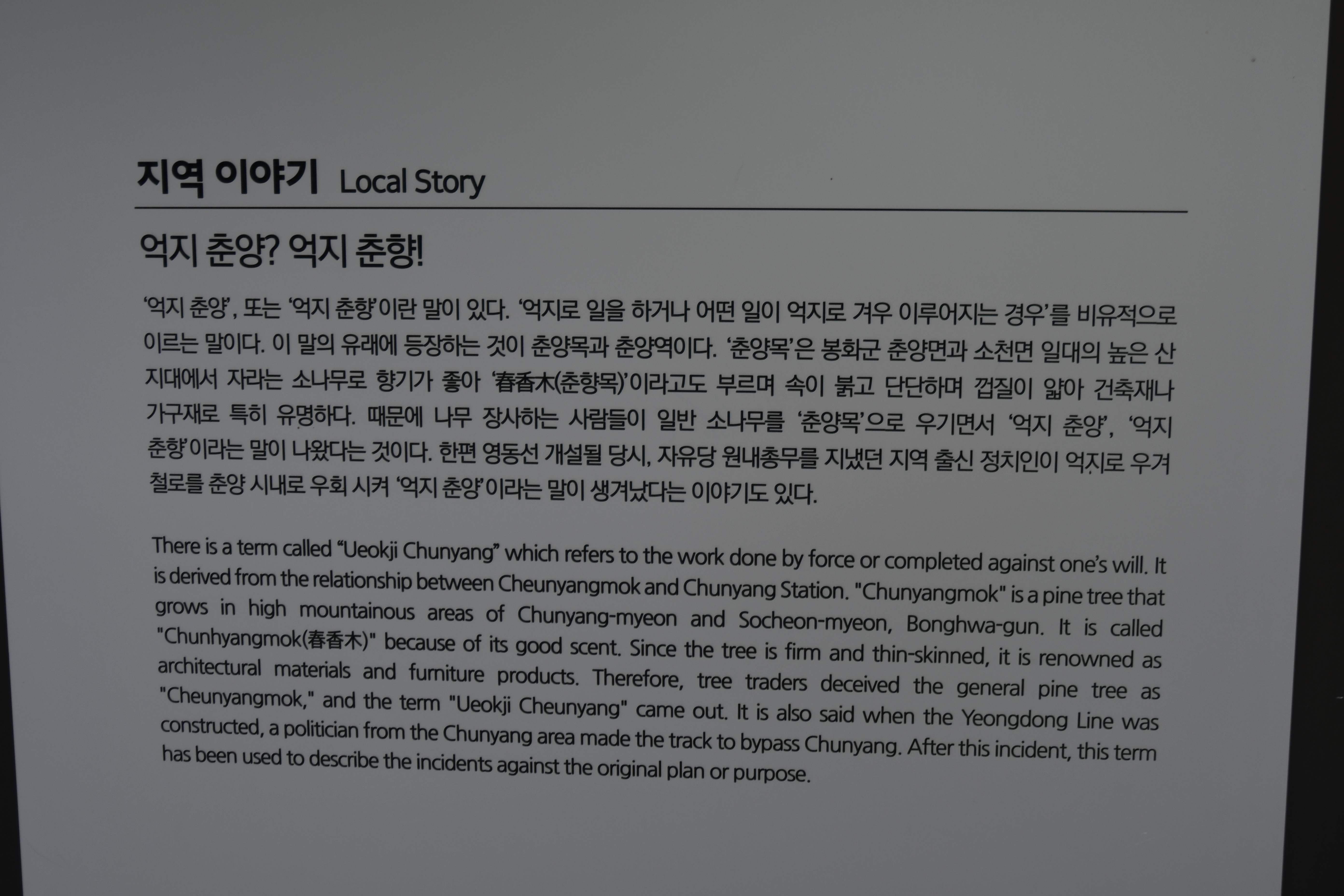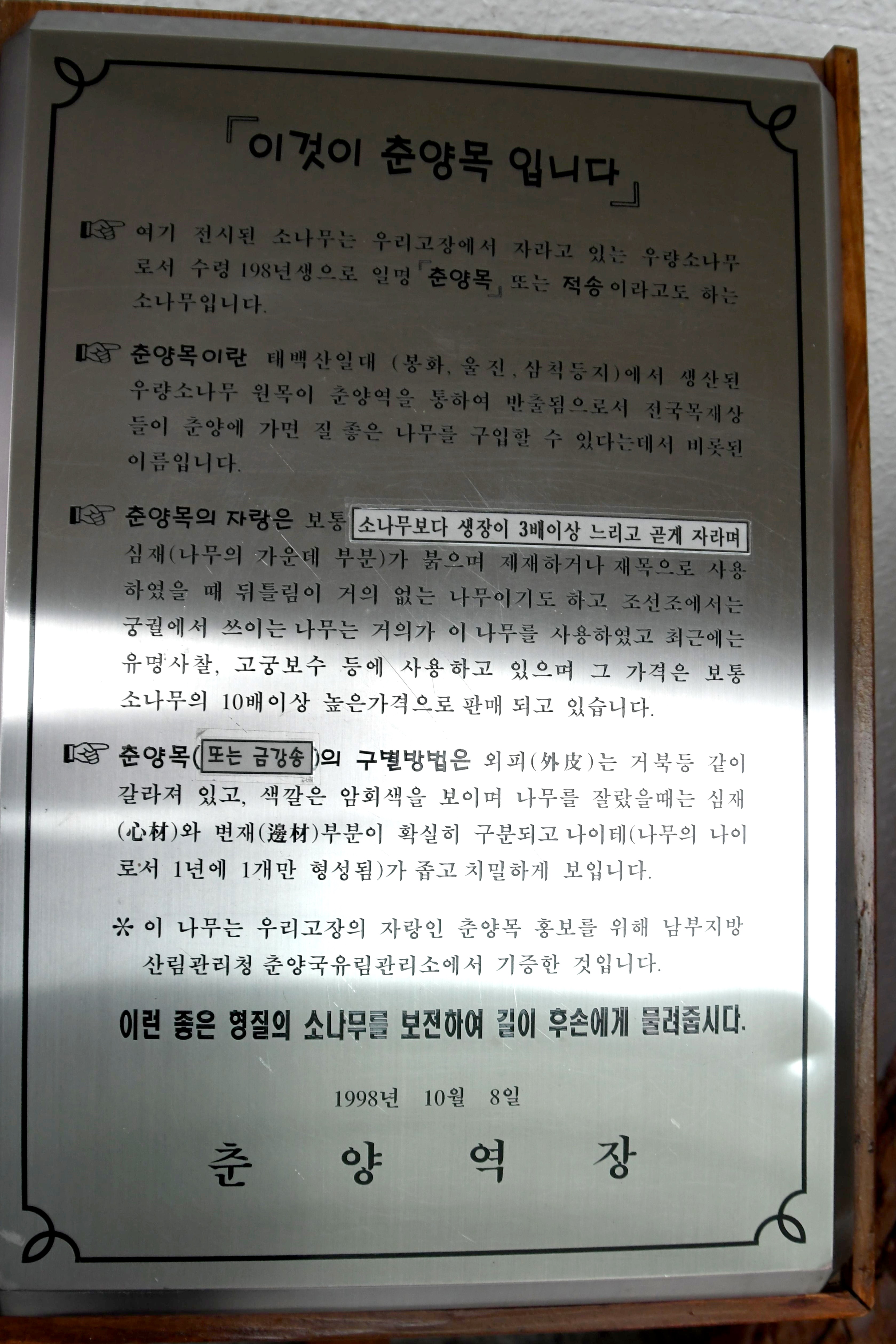 역 구내에 비치, 춘양목의 우수한 품질과 그에 얽힌 재미있는 이야기들을 확인해볼 수 있다.